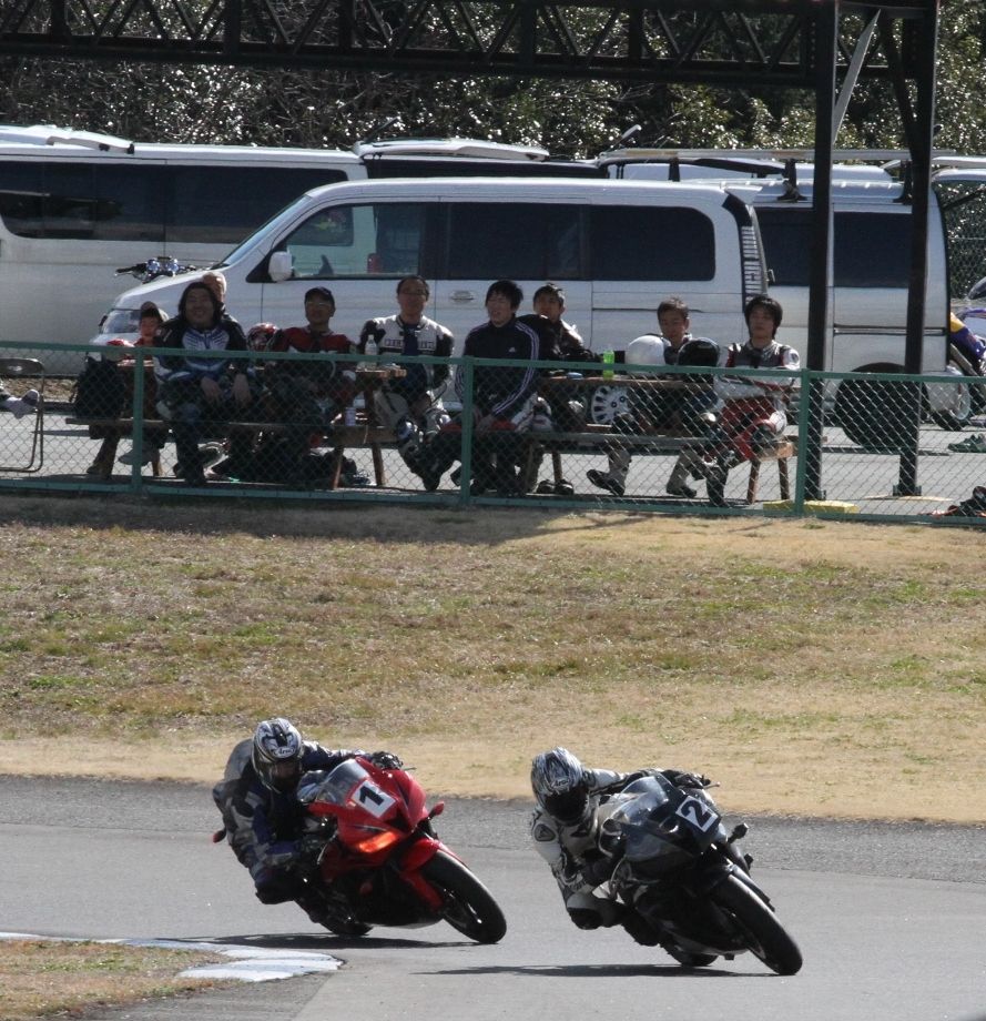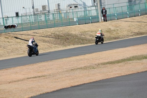 さらにその後方ではCBR250RRの樽井がポジションを2つ落として9番手、その後方に今回唯一のカワサキ、#11ZX6R豊山とつづく。