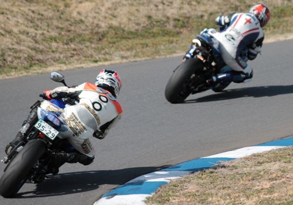4位、5位と間を挟んでの6位争いはGSXR600K7の海老沼、そしてハルクプロホワイトベースを駆る中尾。予選タイム差は僅かにコンマ3秒ほどだったが、ここのところのマラソントレーニングが効いているのか、中尾がプレッシャーを与えていく。