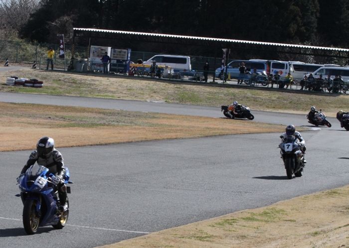 5位争いをリードする250ccの人見を、海老沼、中尾というミドルSSが追う。