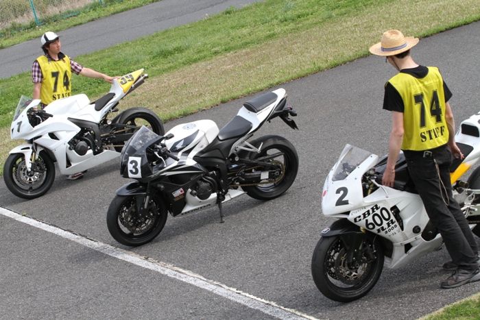前後連動ABS仕様のCBR600RRを駆る#4坂垣内を筆頭に、デイトナの中村、GSXR1000K6の渡邉………