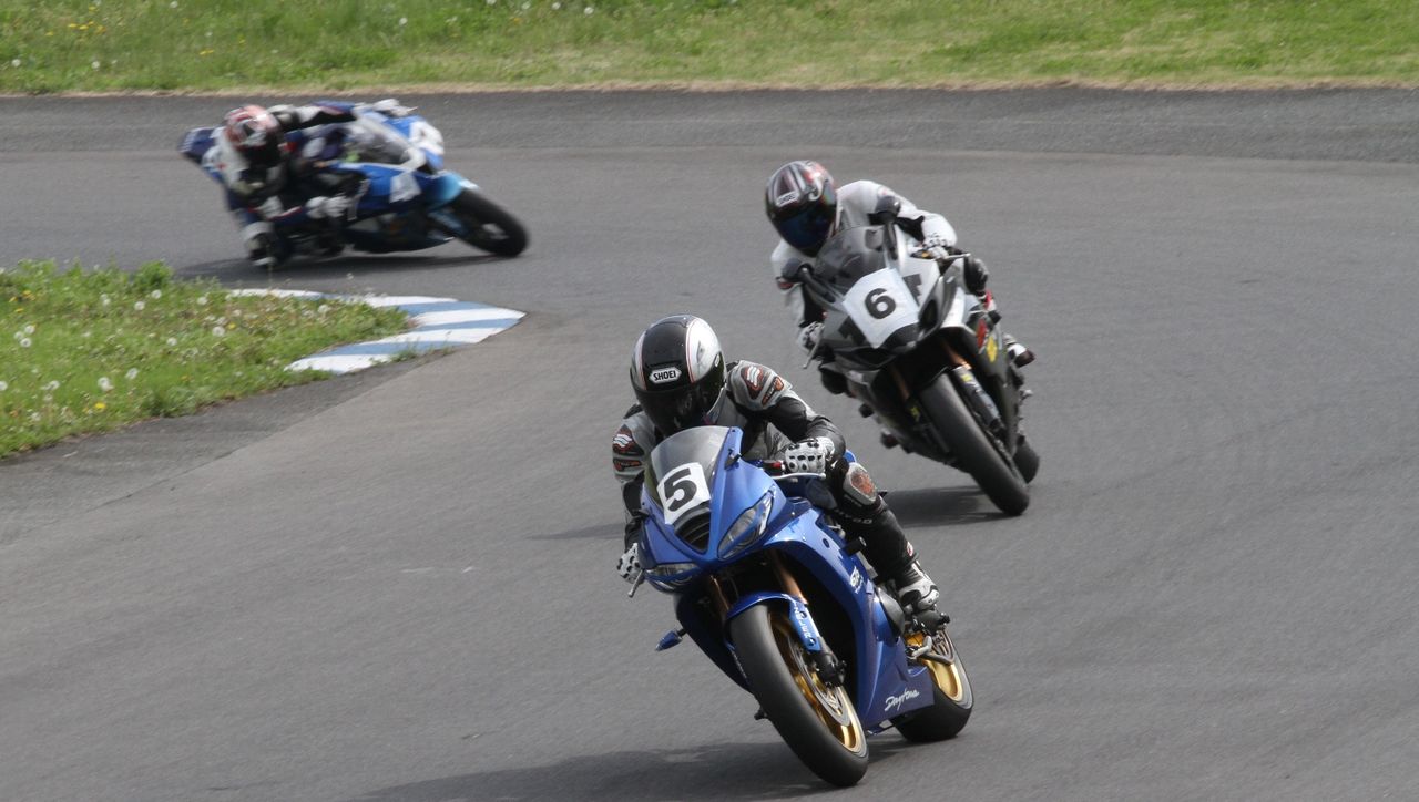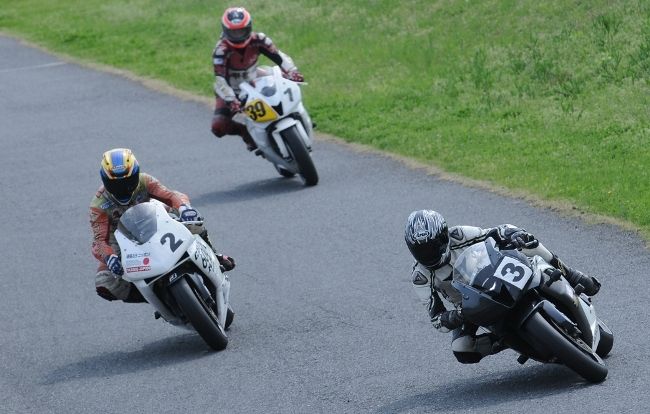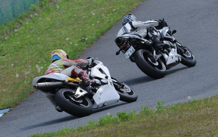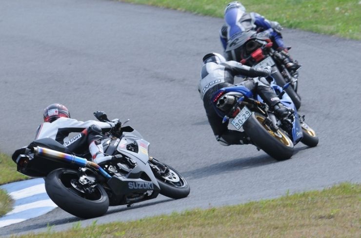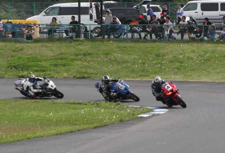 同じくK6の米山、さらにCBR600RRハルクプロ製コンプリートを駆る中尾。この中では中尾のペースが上がってきている。