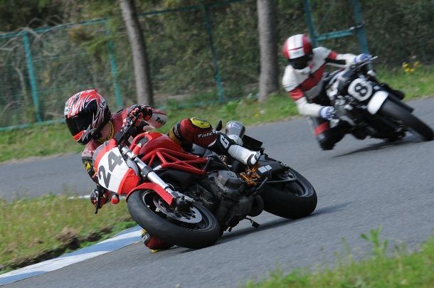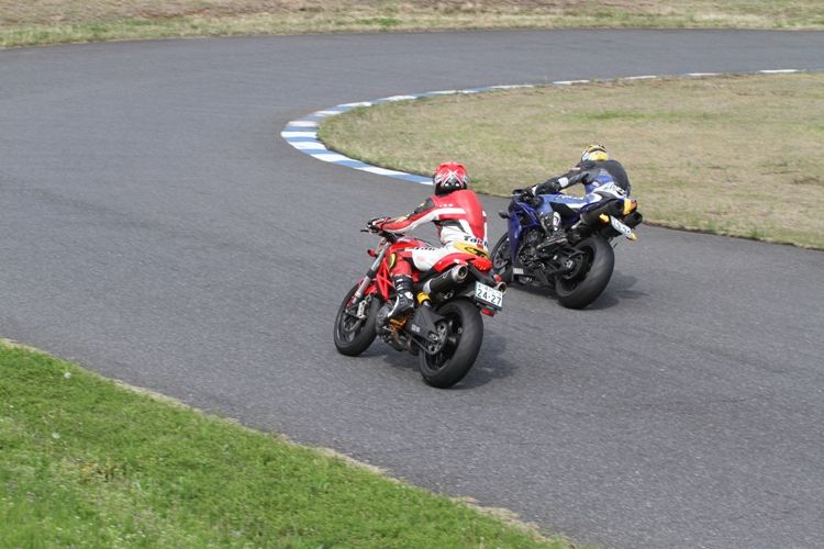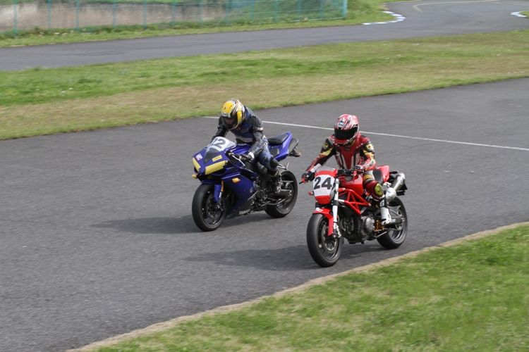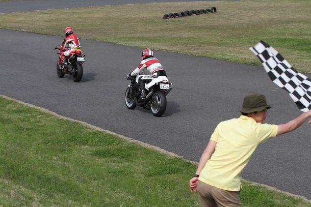 ともに現行SSモデルではないマシンを駆るが、トミンモーターランドならそれほどハンディも大きくはない。