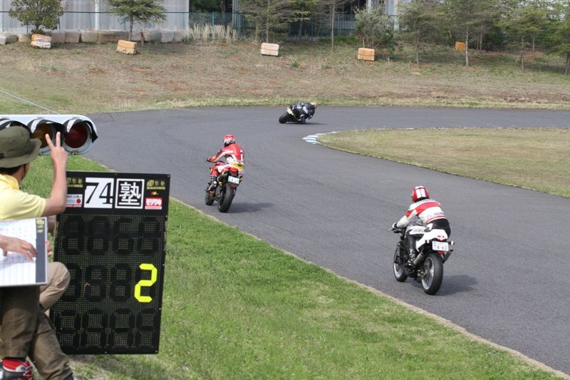 しかしその後方では加野GSXRが佐々木FZに追突しかけてラインブレイク。