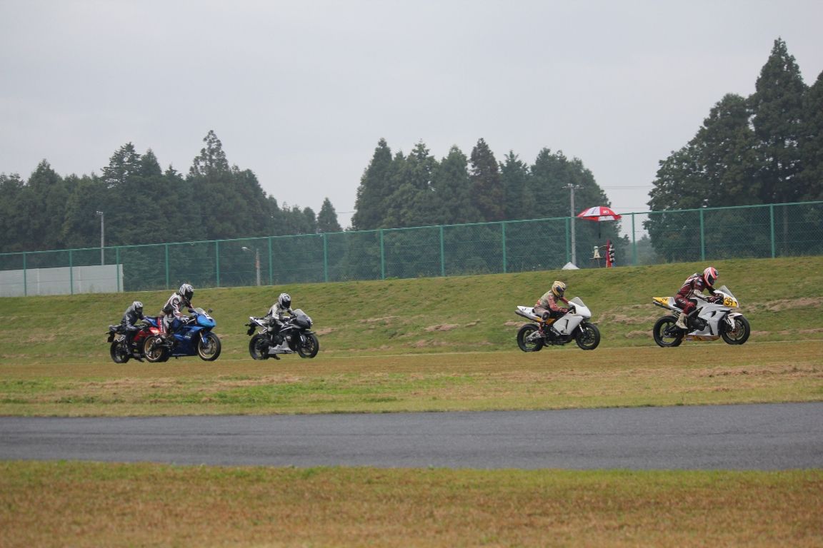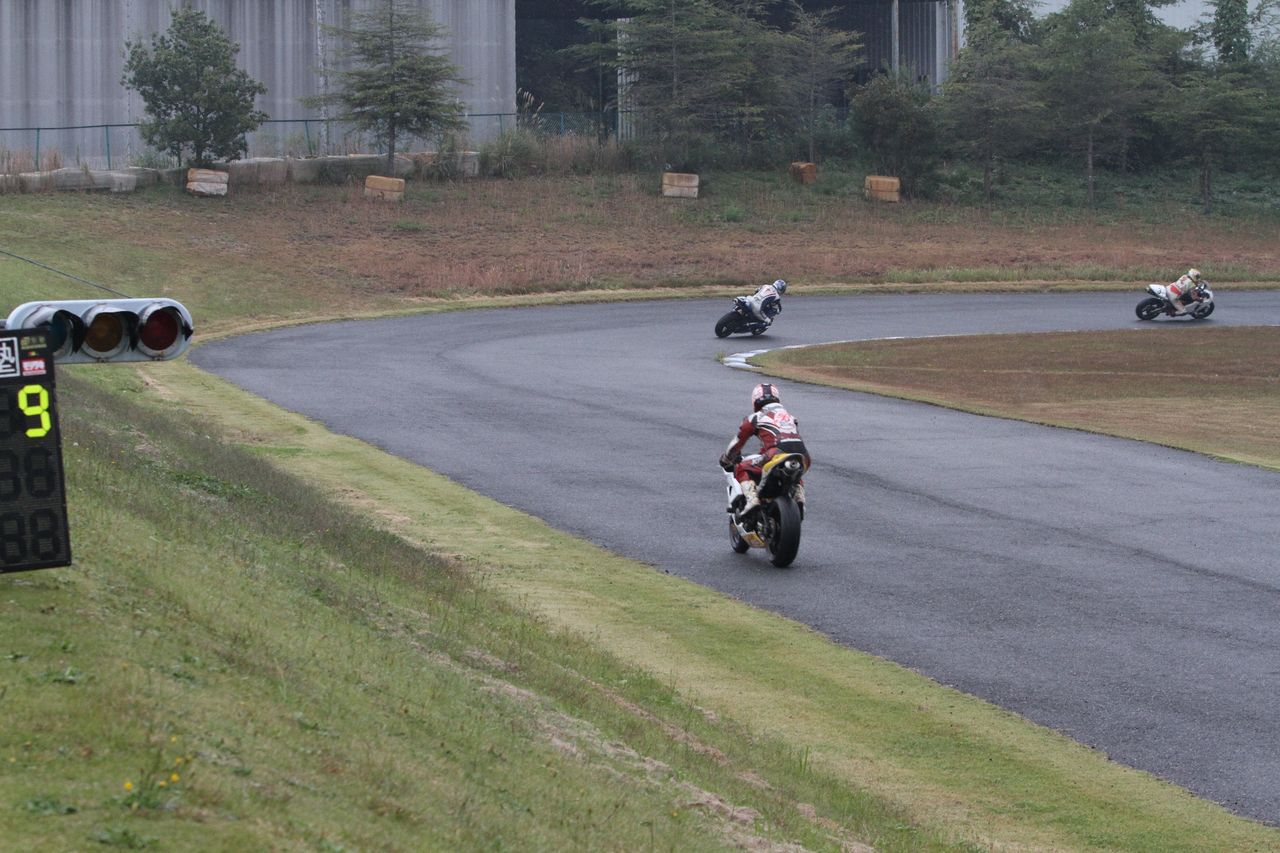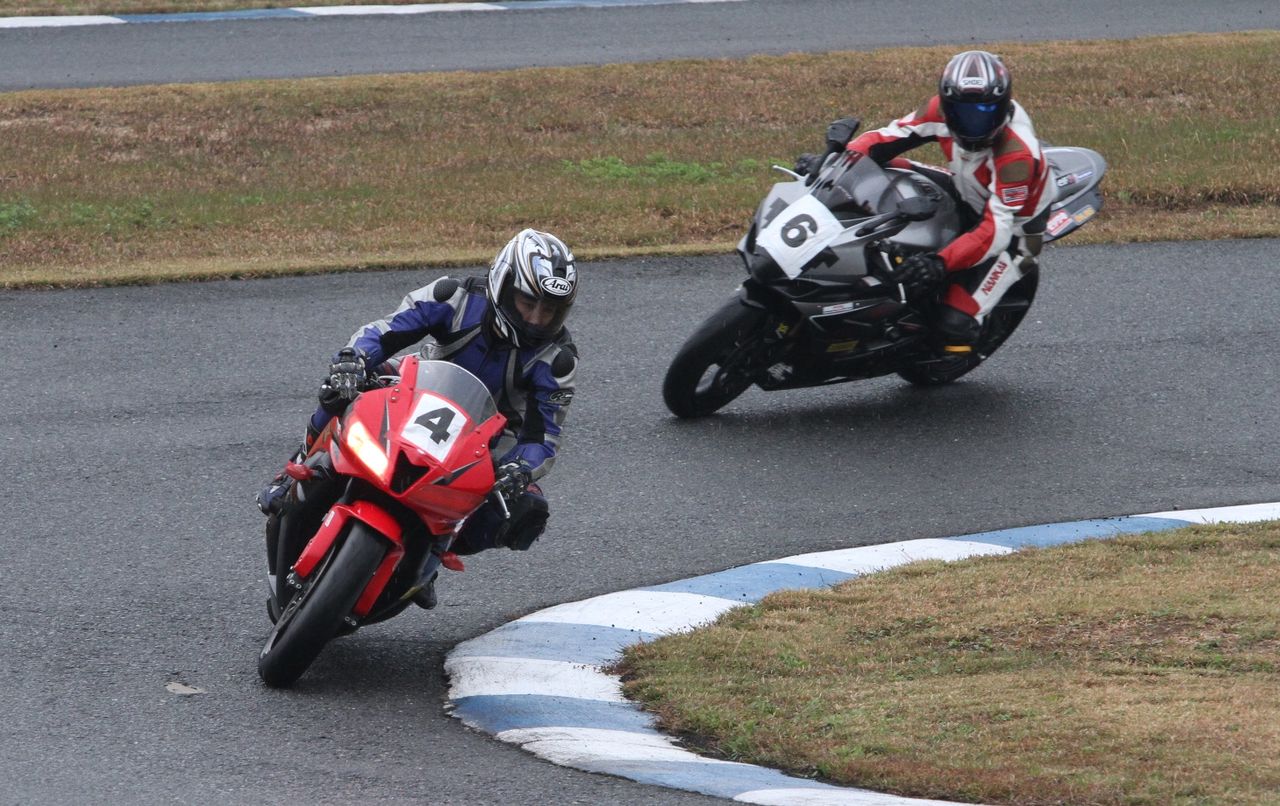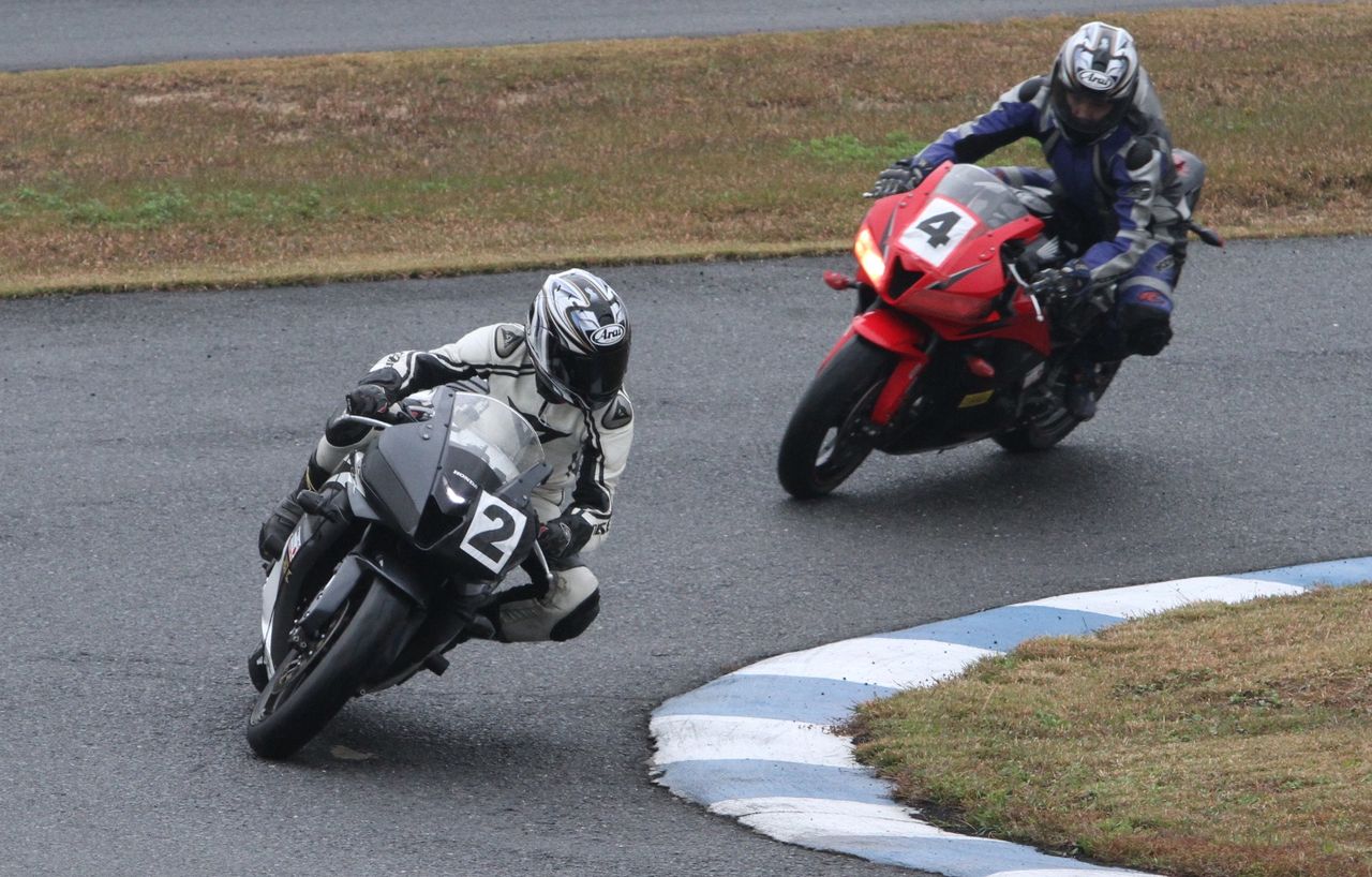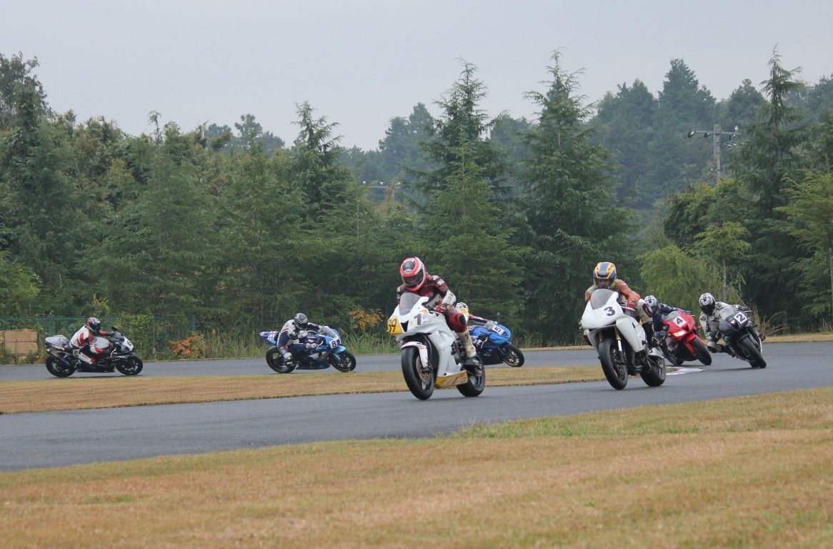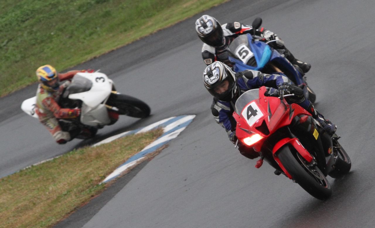 そして4番手の坂垣内まで全選手がディアブロコルサのSC1、及びSC2の組み合わせである。写真ではもうひとつ分かりにくいが、路面は飛沫が上がらない程度の、フルウェット状態だ。