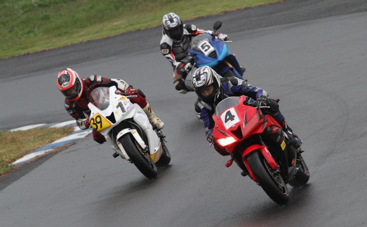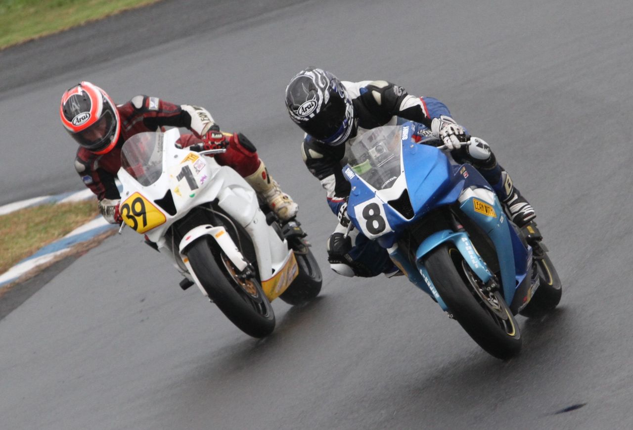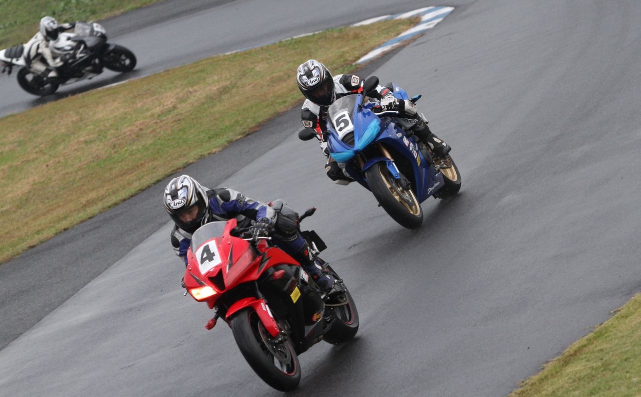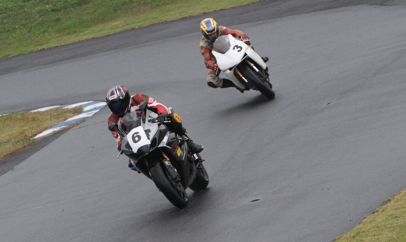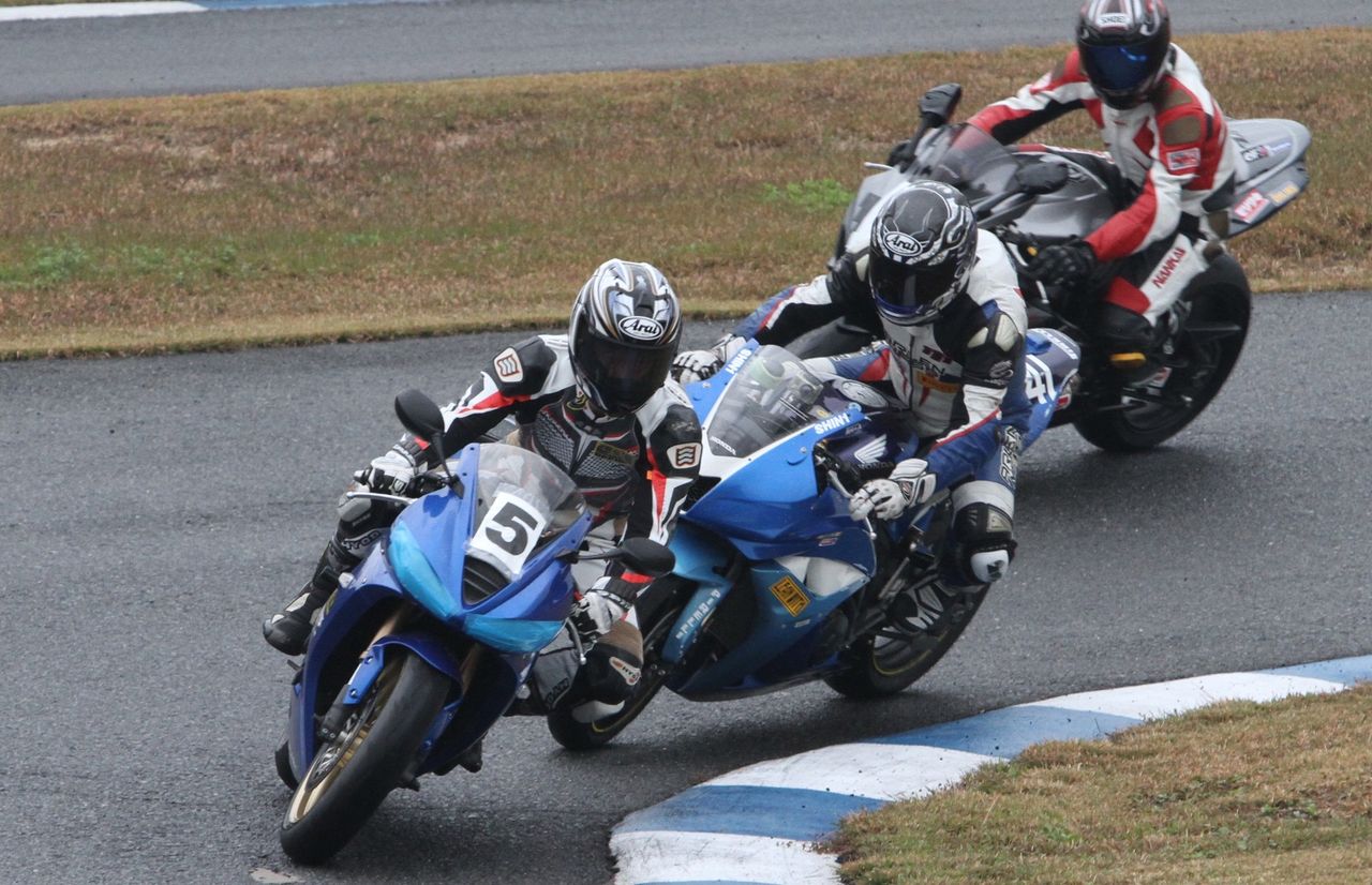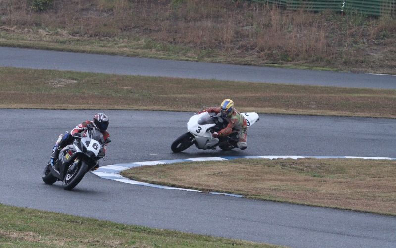 そして4番手の坂垣内まで全選手がディアブロコルサのSC1、及びSC2の組み合わせである。写真ではもうひとつ分かりにくいが、路面は飛沫が上がらない程度の、フルウェット状態だ。