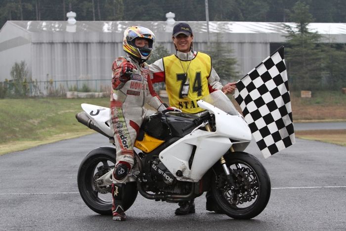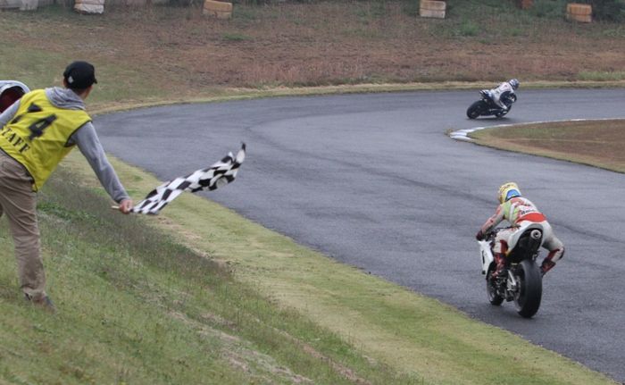 幾度かハイサイドしかけたが、二周目の1コーナーでトップを奪ってから、誰にもその座を譲ることなく最後まで力走を続けた。