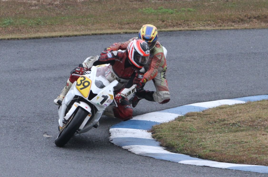 直後の2コーナー、この二年間数々の名バトルを繰り広げてきた梨本塾の双頭竜がいきなり激突。