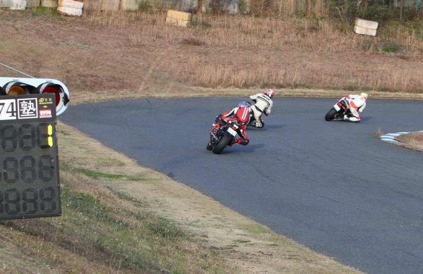 トップ3、最後の3コーナー立ち上がり。なんとか勝利をモノにしたかった多田、安倍の両名だったが………
