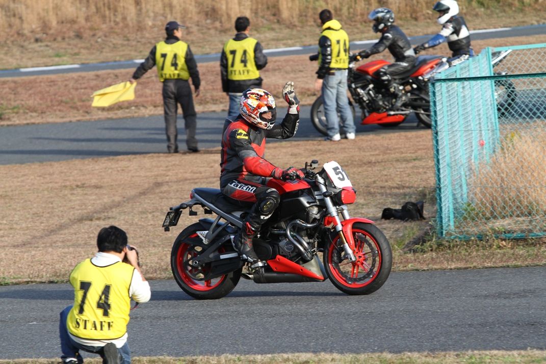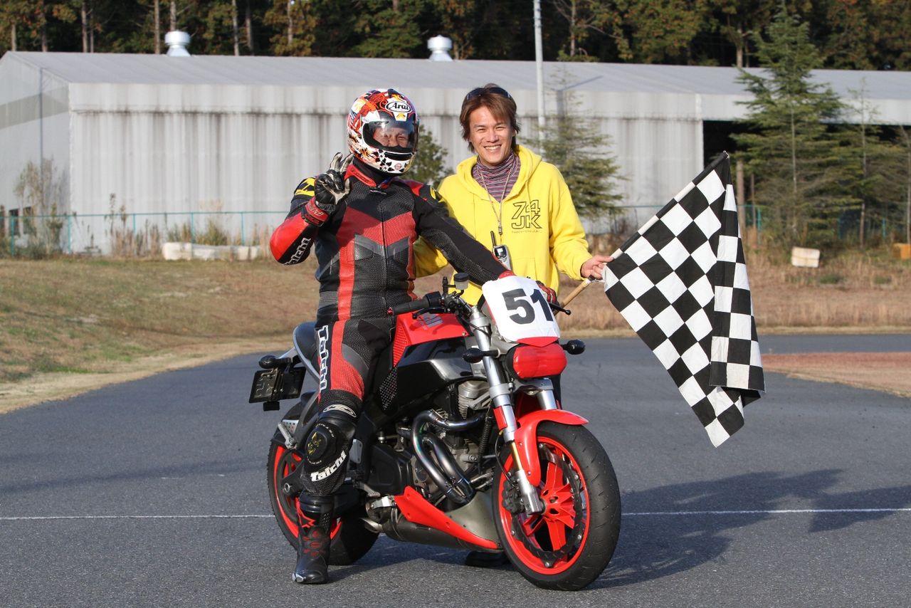 初参加ながらも経験者を相手にがっぷり四つ勝負、そして見事を勝利をものした青木XB12SS。