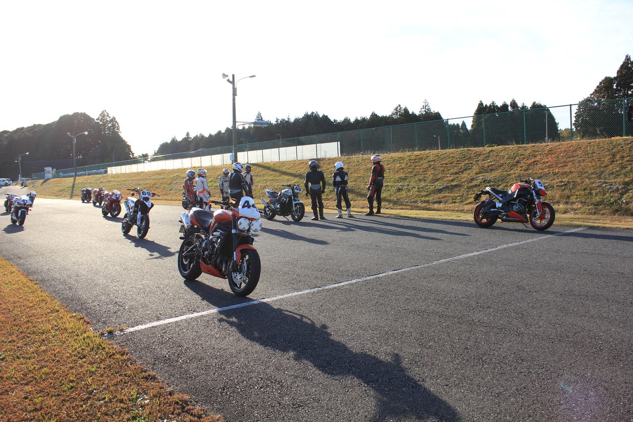 フロントー、一台欠けているのは予選2番手だった加藤選手。所要により、決勝は出走前リタイヤとなる。その両サイドにはXB12SS、そしてストリートトリプルというNK陣。