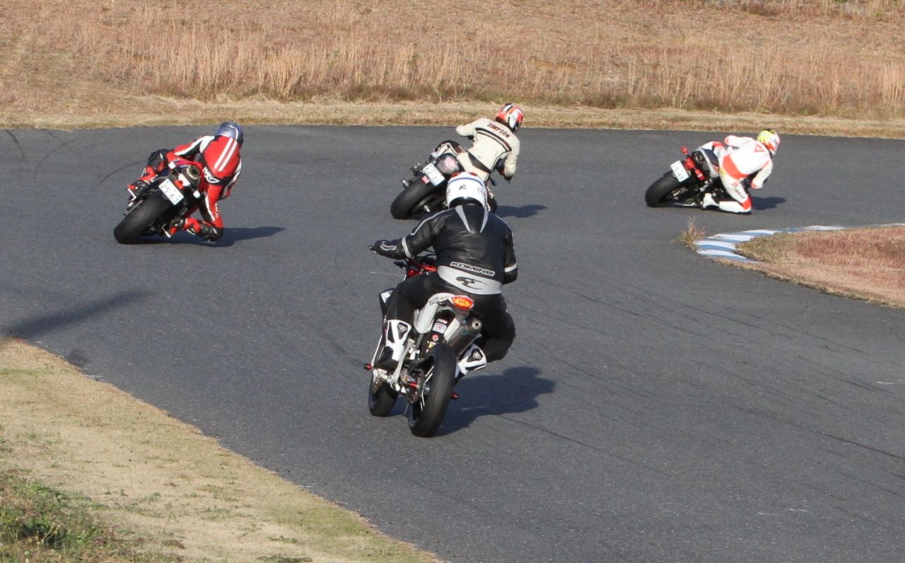 さらにその後方では片寄XBのインを、山田、美濃部のCBR600RR勢が狙っている。