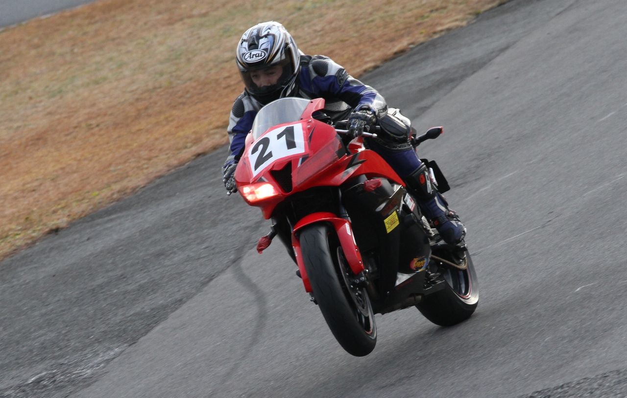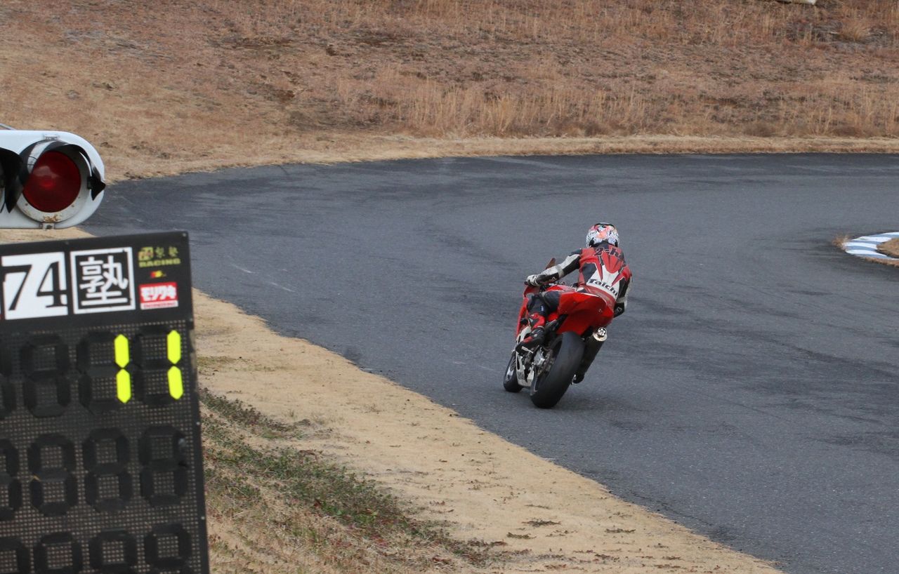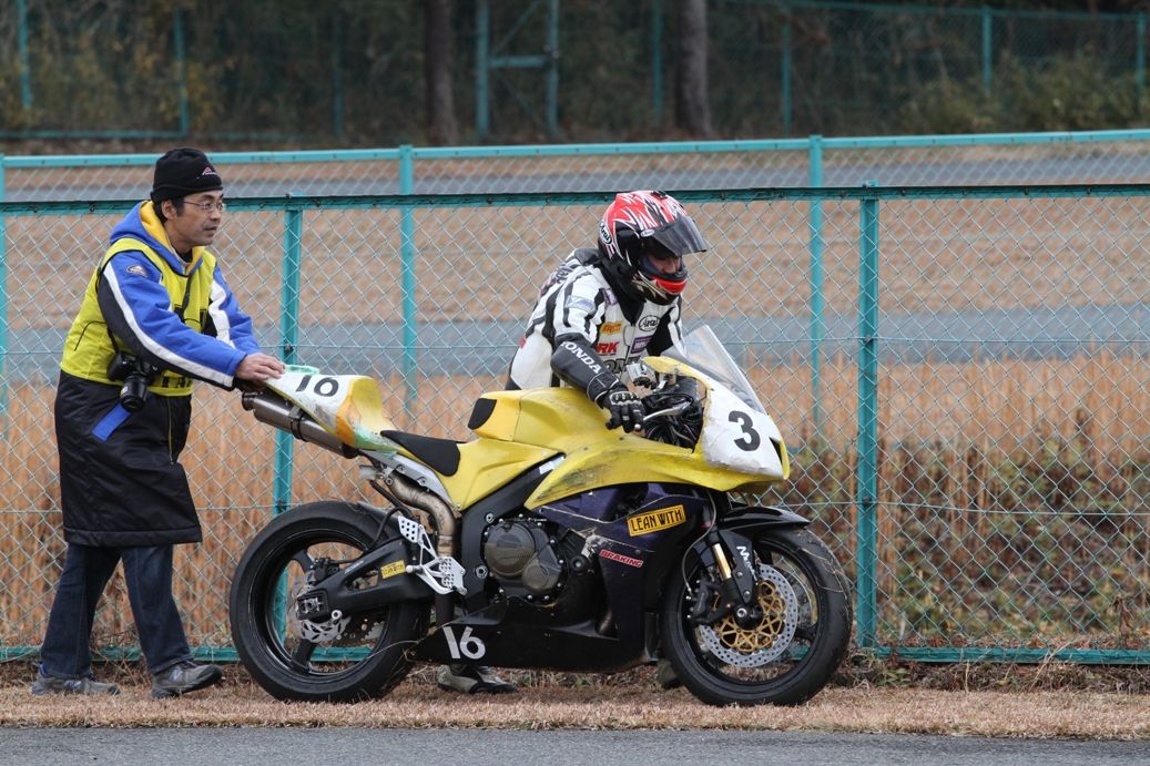 お正月カラーとも言うべき艶やかなハニービーカウルに身をまとった人見CBR600RR。