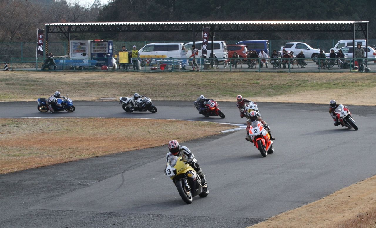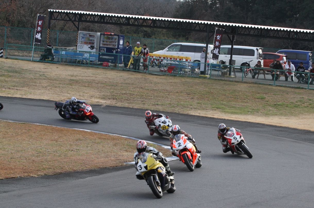 一方5位争いはペースの上がらない山中を、生駒、榎本の両名が狙っている。すでにお気づきの方も覆いと思うが、このAクラスは転倒した石川まで全員がアライヘルメットを愛用している。速さ追求とは、同時に安全を求めることでもあるのだろう。