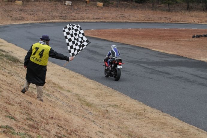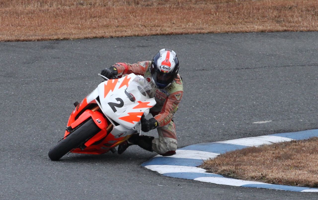 レース序盤からトップを快走した人見が独走で優勝チェッカーを潜り抜ける。