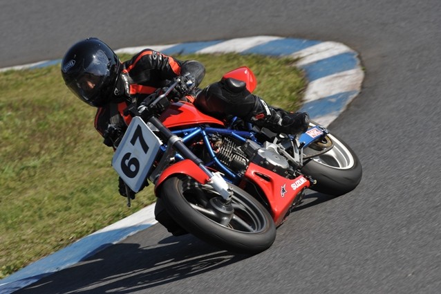 1コーナーからS字にかけて梨本亮CB 400SFが仕掛ける。