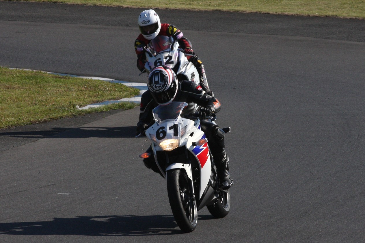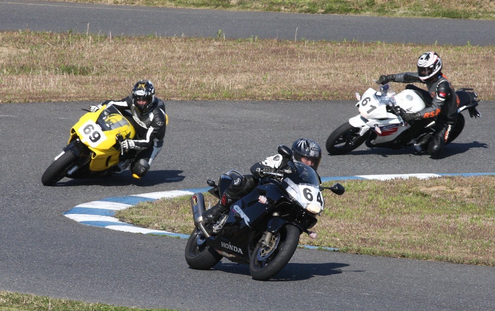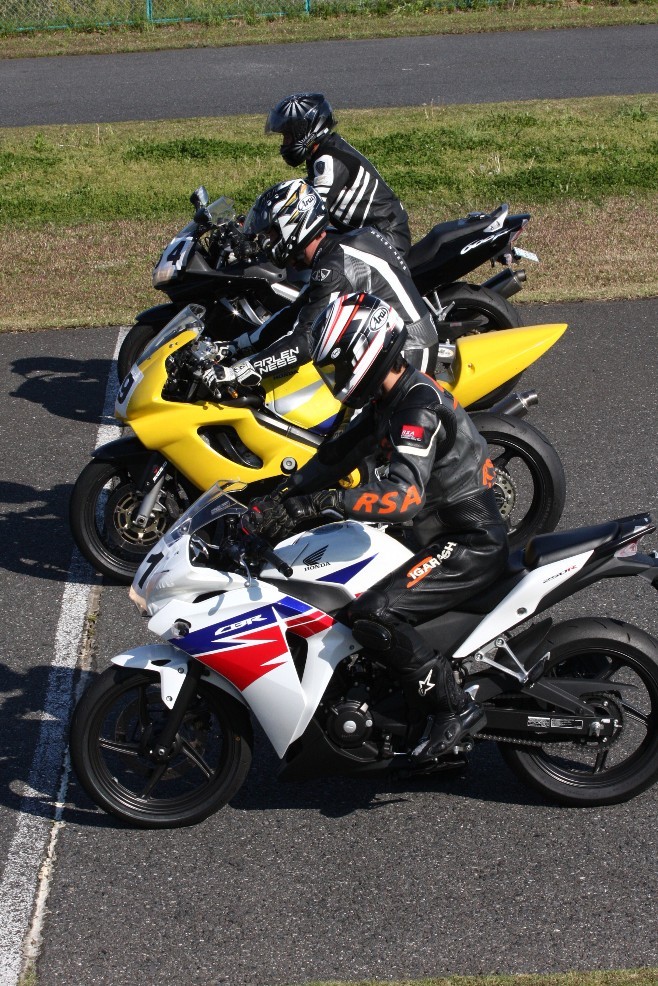グリッドにはCBR250R、CBR600F4、そしてCBR600Fと三台のCBR勢が占拠。意図しているわけではないが、梨本塾におけるCBR人気は相変わらず高い。