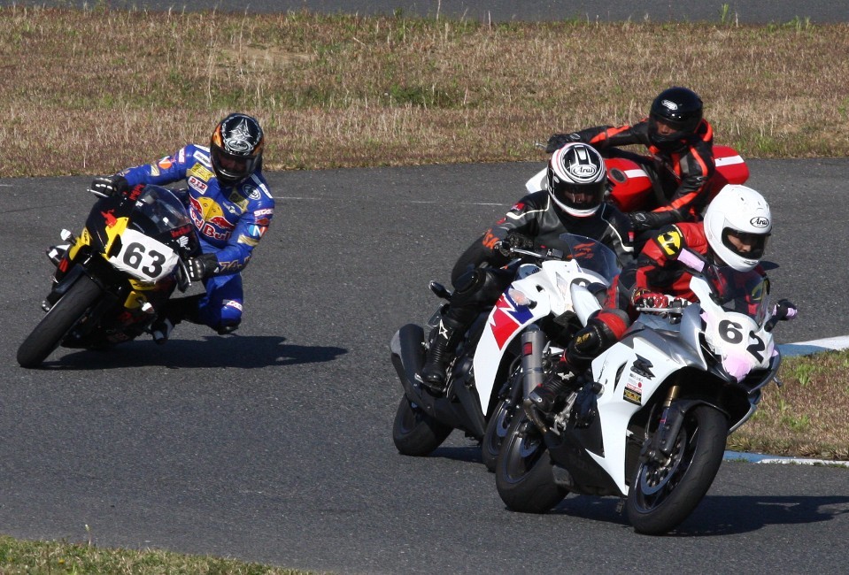 さらにその後方には佐藤R1、梨本CB 400SF、伊東RSV1000、そして大塚NSR250Rと続く。