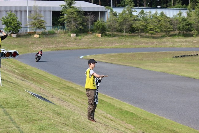 レース終了後、3コーナーにて。初優勝にやや戸惑う?#61松木R1。