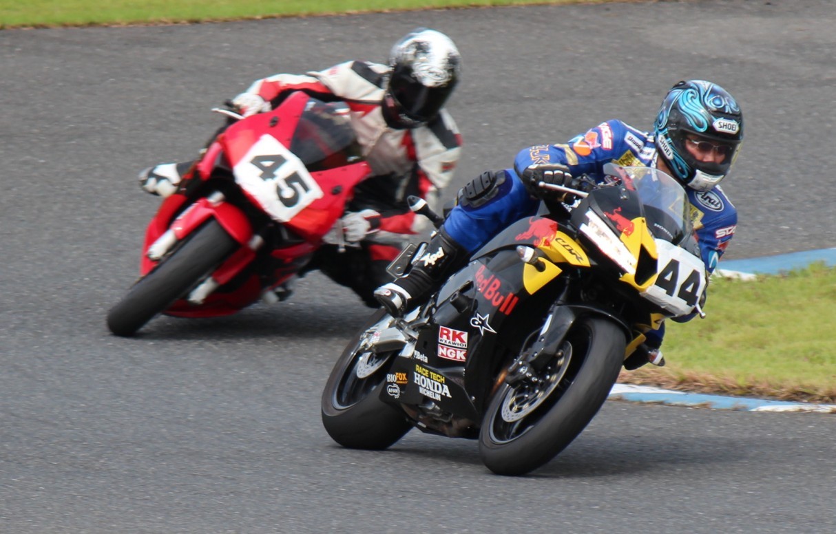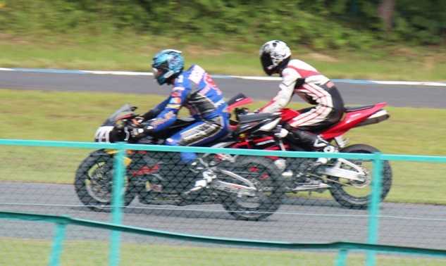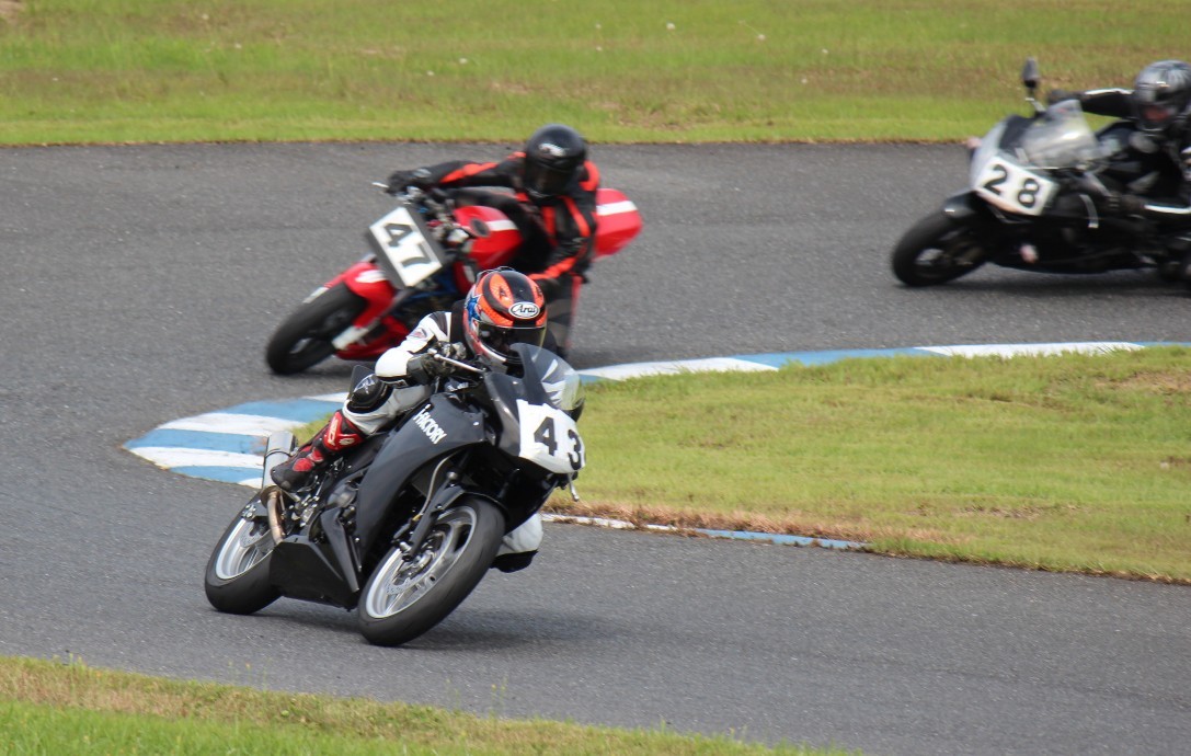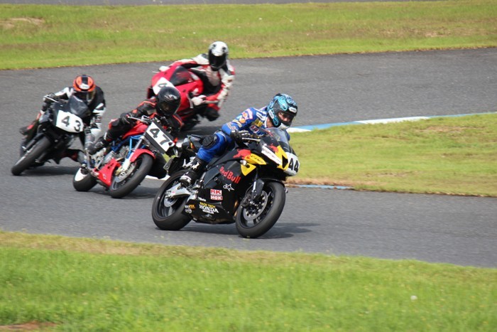 CBR250Rを駆る加藤も後方の殺気を感じてか、しっかりインを閉める。