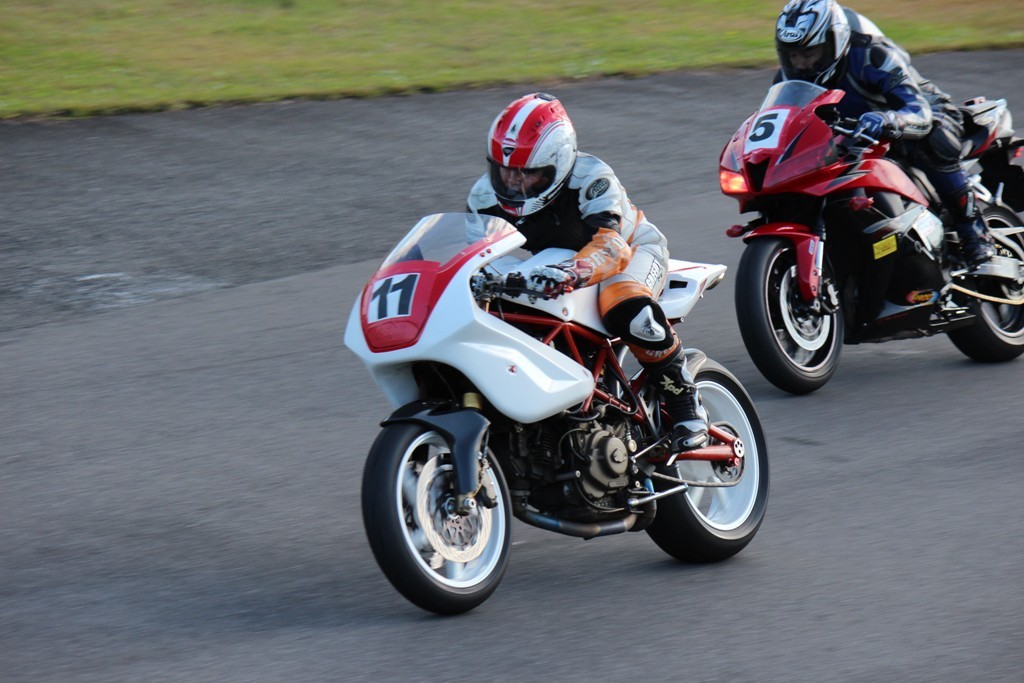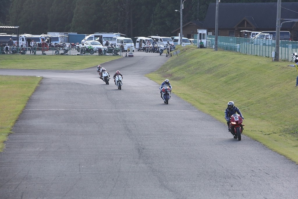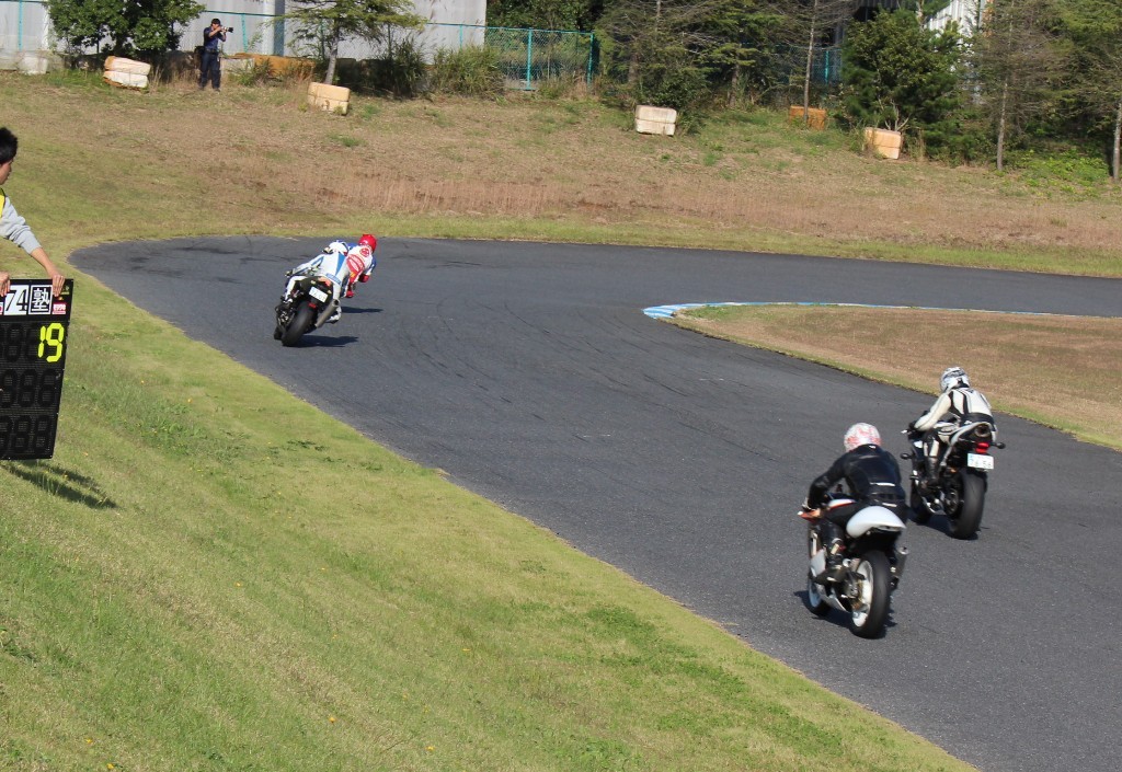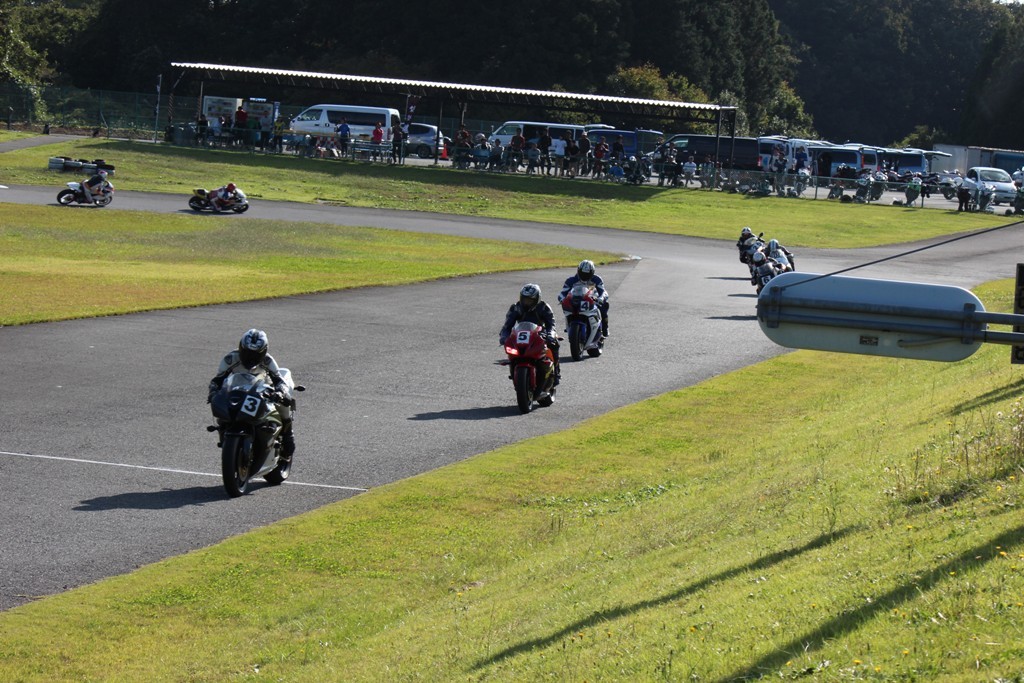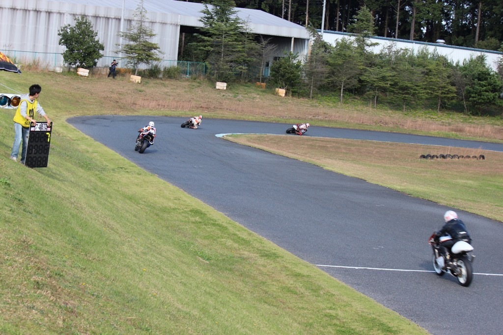 さらに3番手には山中、4番手に坂垣内、5番手に榎本のCBR600RR勢。ここまでがトップと同一周回だ。さらに6位に佐々木FZ750改、7位に中村デイトナ675、8位に高橋CBR600F、9位に富永DB2、10位に山本ZX10R、11位に斉藤NSR250、そして12位に皆藤CBR600Fの順でゴール。