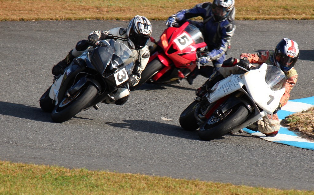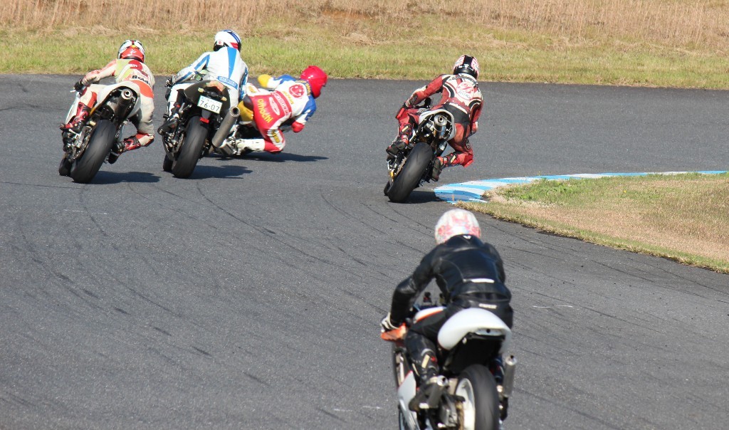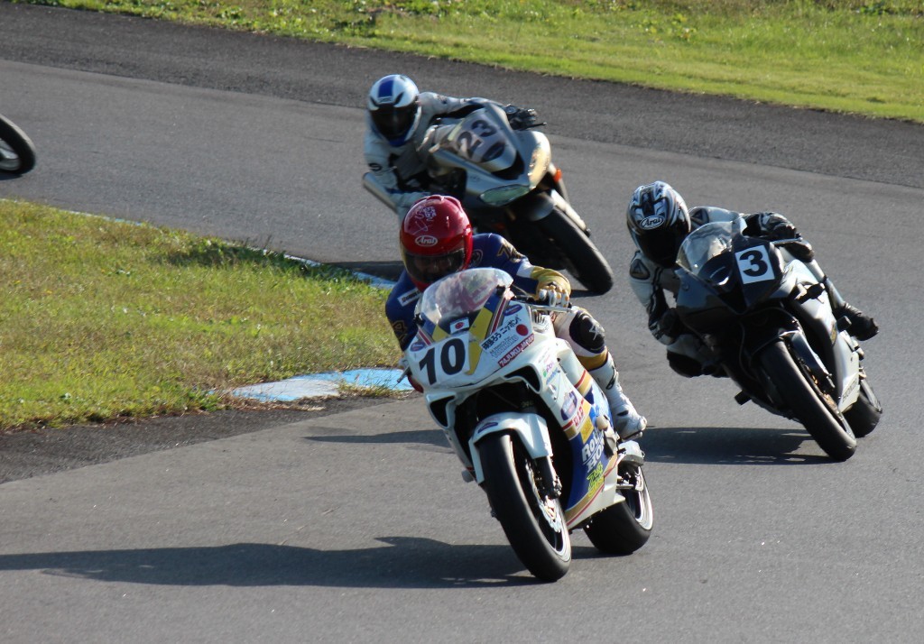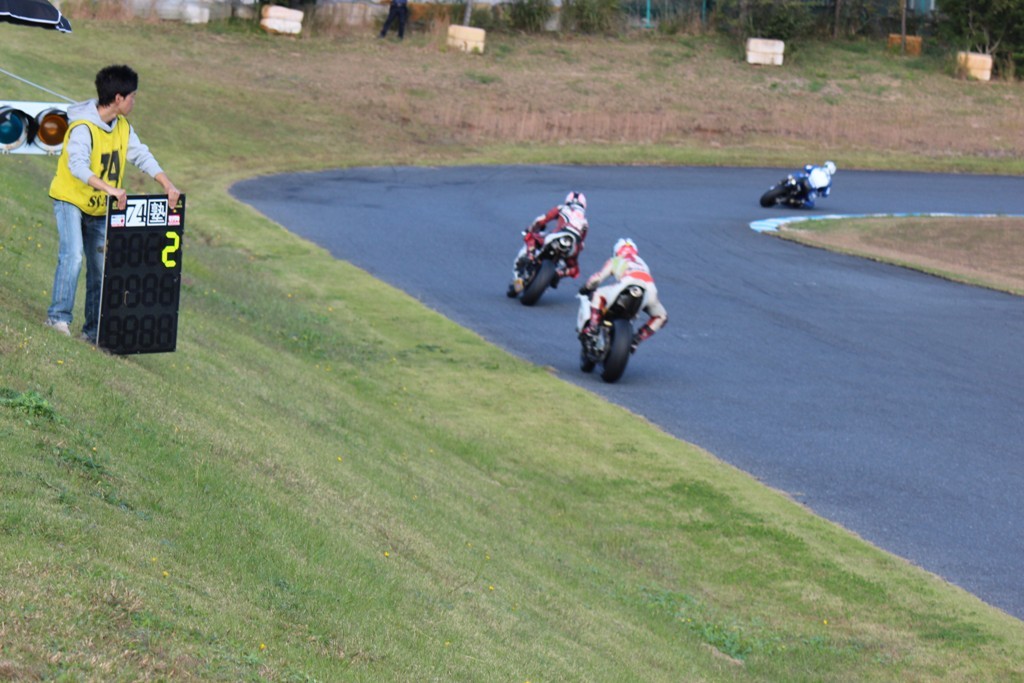 まず先に榎本CBR600RRが富永をパッシング。そしてその後3コーナーでトップ2が富永をバックマーカー処理。