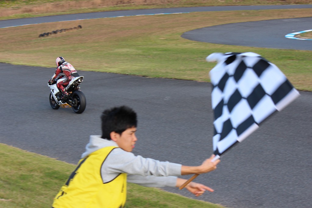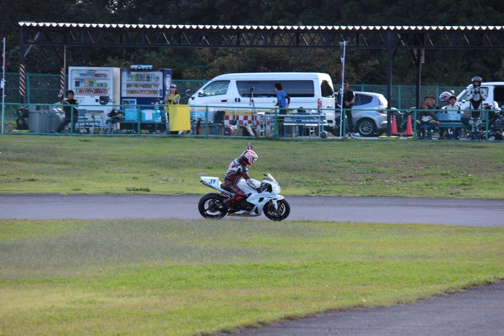 30LAPを終え、見事トップでチェッカーフラッグを受けたのは篠塚CBR600RR。最後まで諦めなかった人見が悔しい2番手でゴール。
