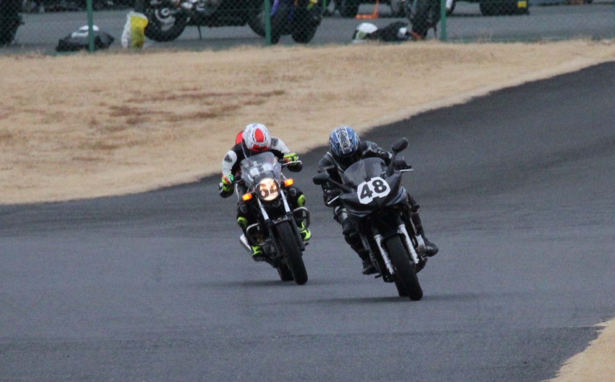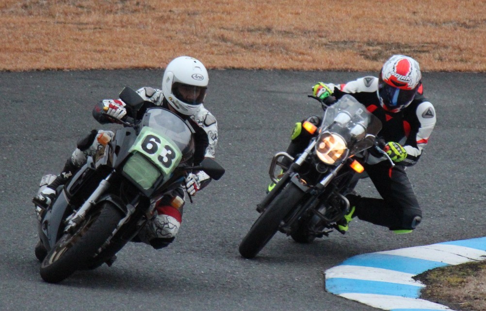 ともに初優勝を目指す妹尾VTR250、高島GPZ900Rからすれば、願ってもない状況へ。