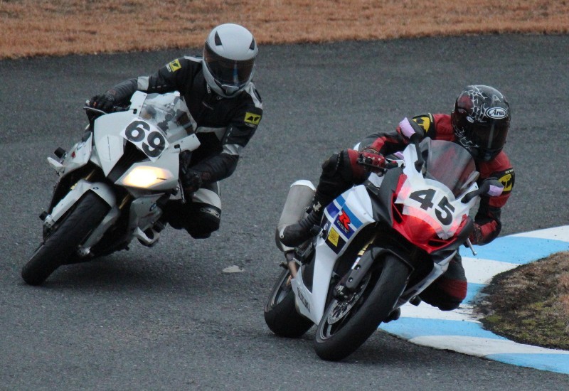 ここで躓いたのは#45平沼。バックマーカーに引っかかる格好で、後続の#69大塚、#70脇谷が追いついてくる。