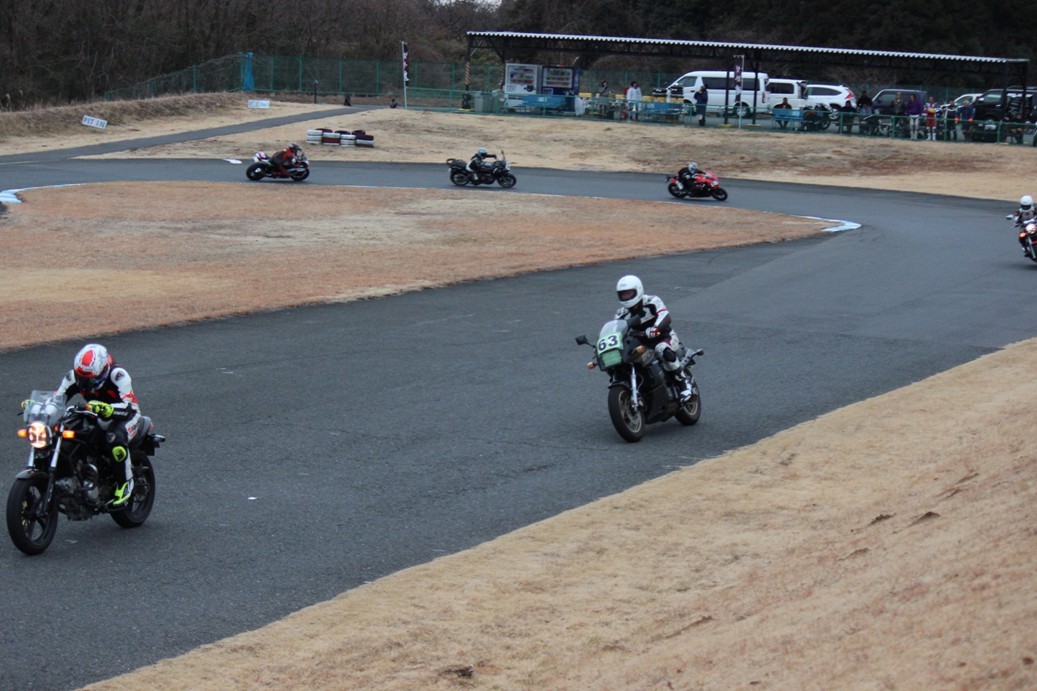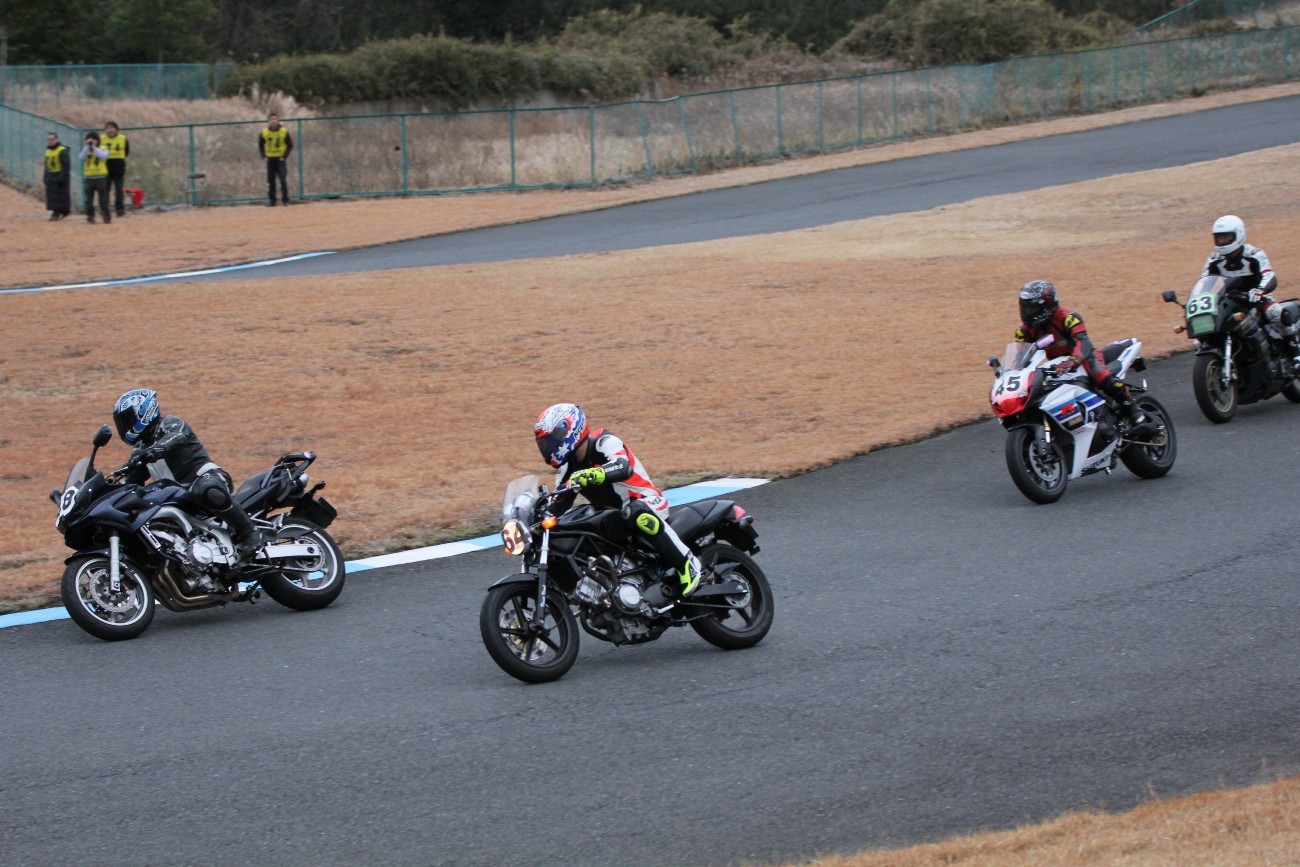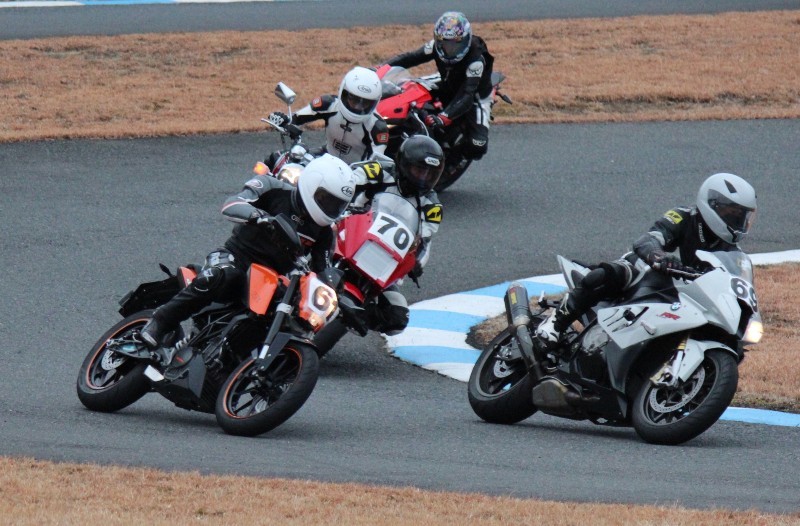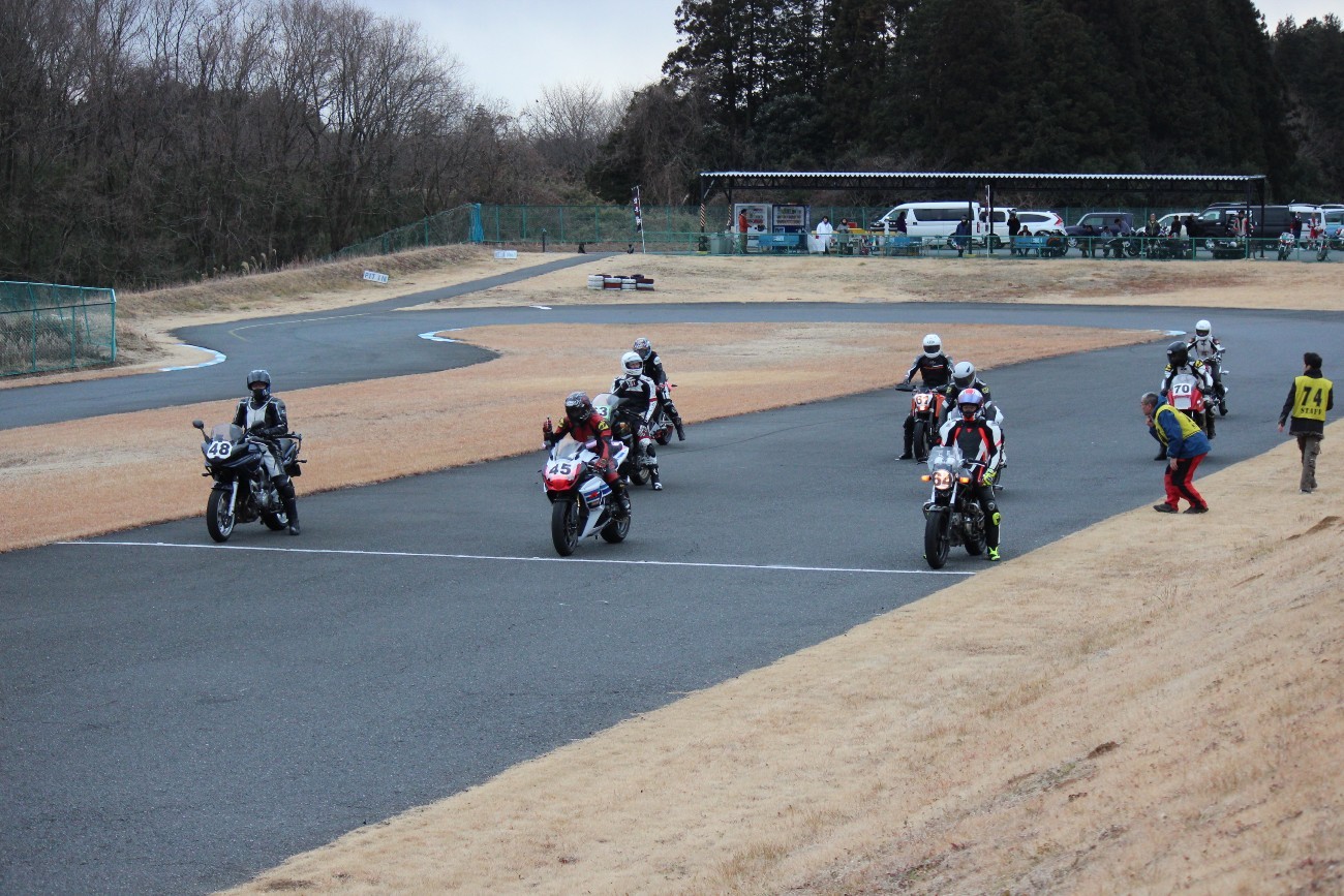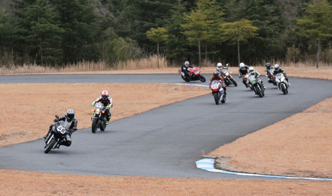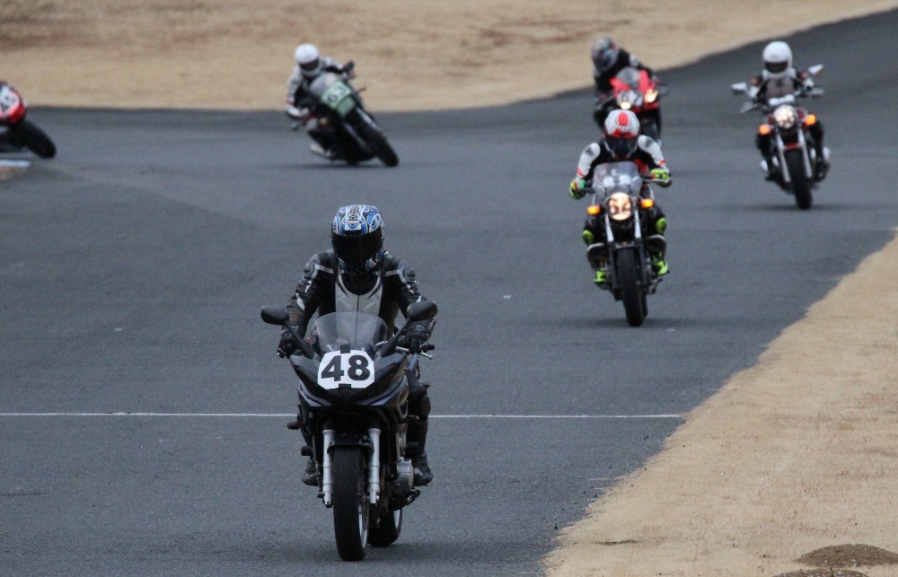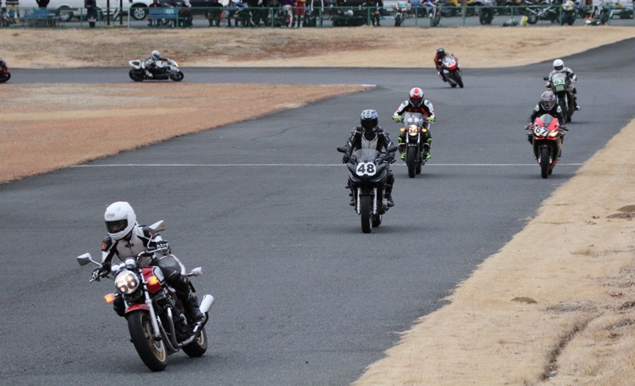 4番手に高島GPZ900R、5番手に初参加の大塚S1000RR、6番手も同じく初参加の脇谷GPZ900R、7番手に田口125DUKE、8番手に鈴木CB750………