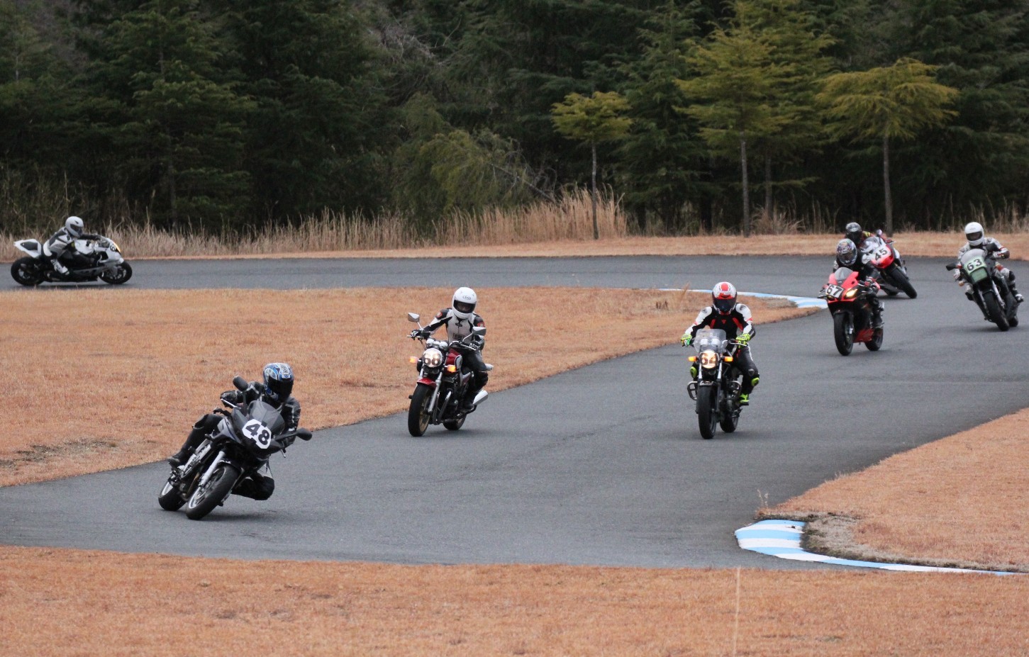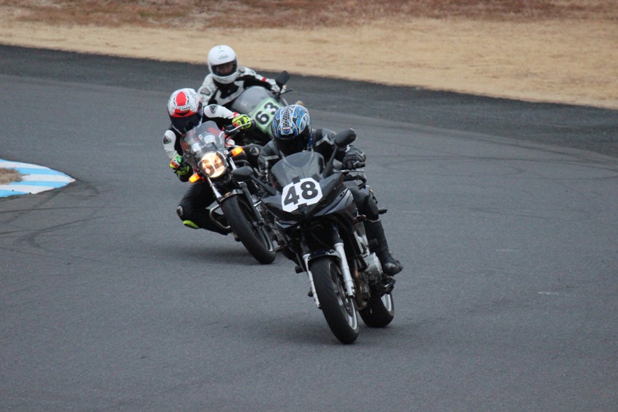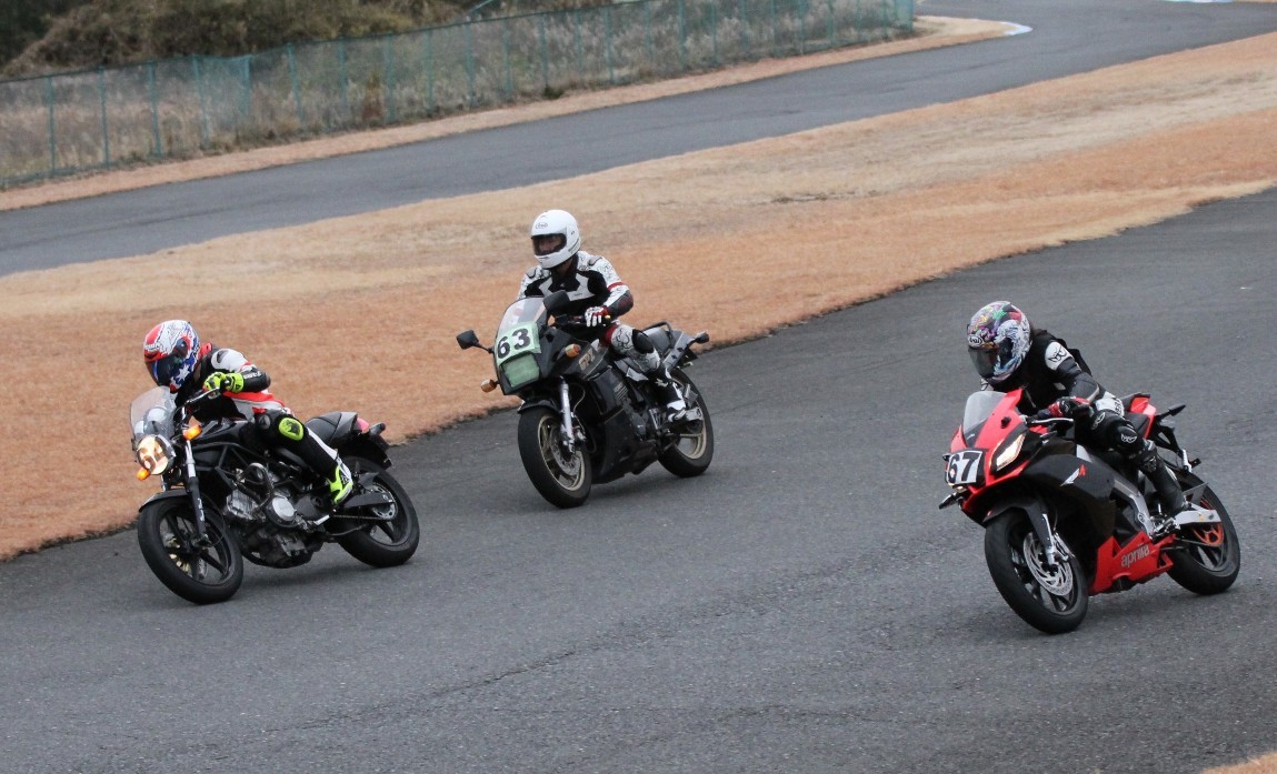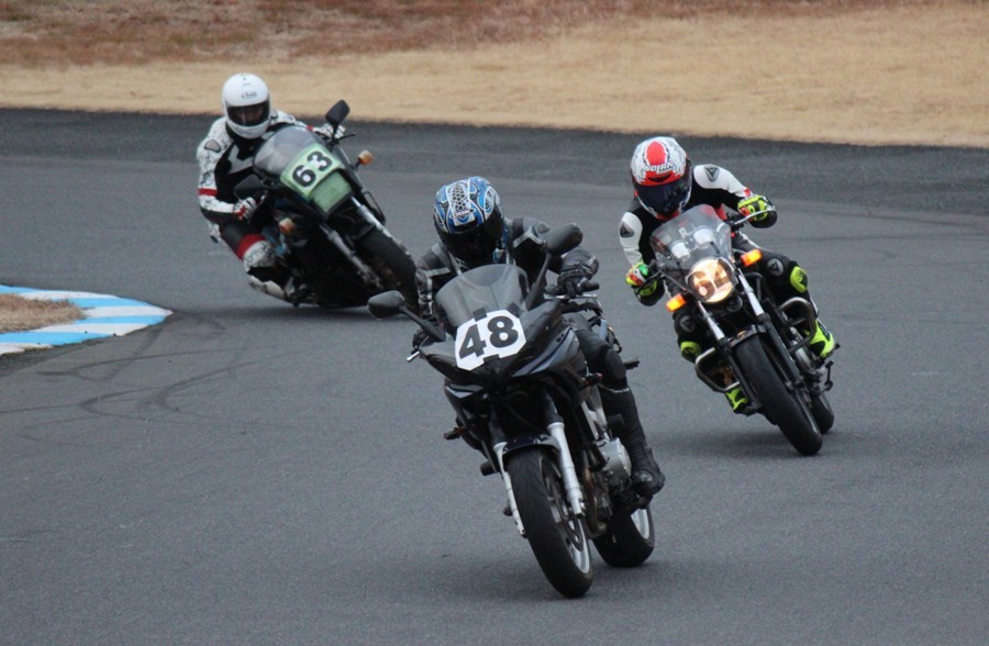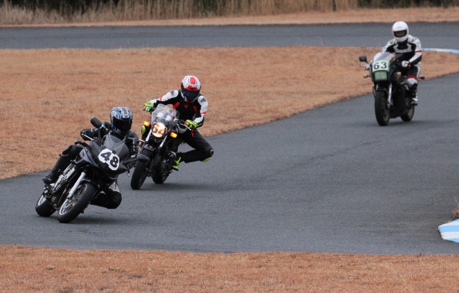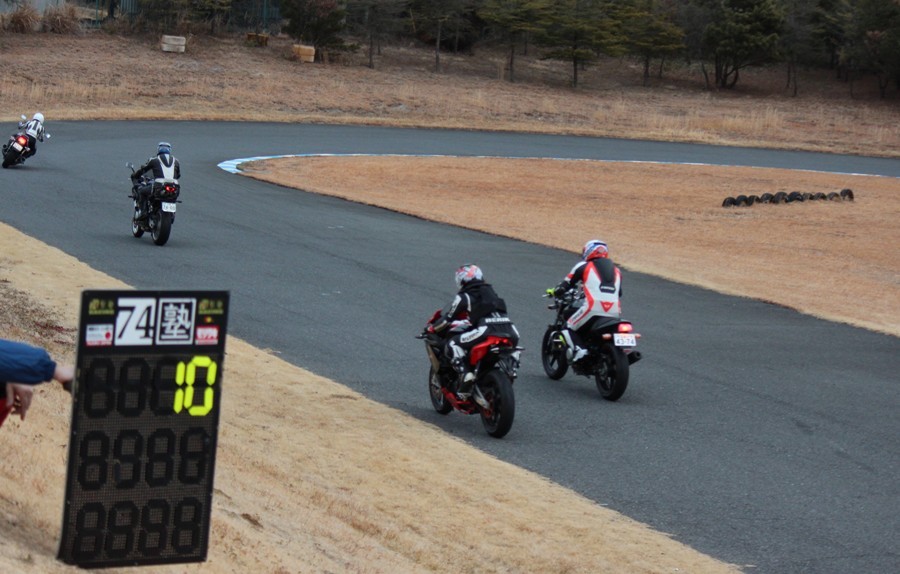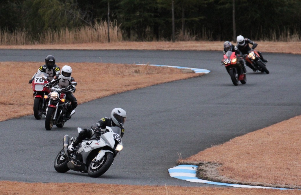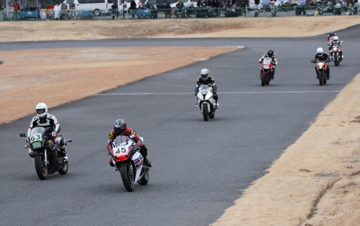 4番手に高島GPZ900R、5番手に初参加の大塚S1000RR、6番手も同じく初参加の脇谷GPZ900R、7番手に田口125DUKE、8番手に鈴木CB750………
