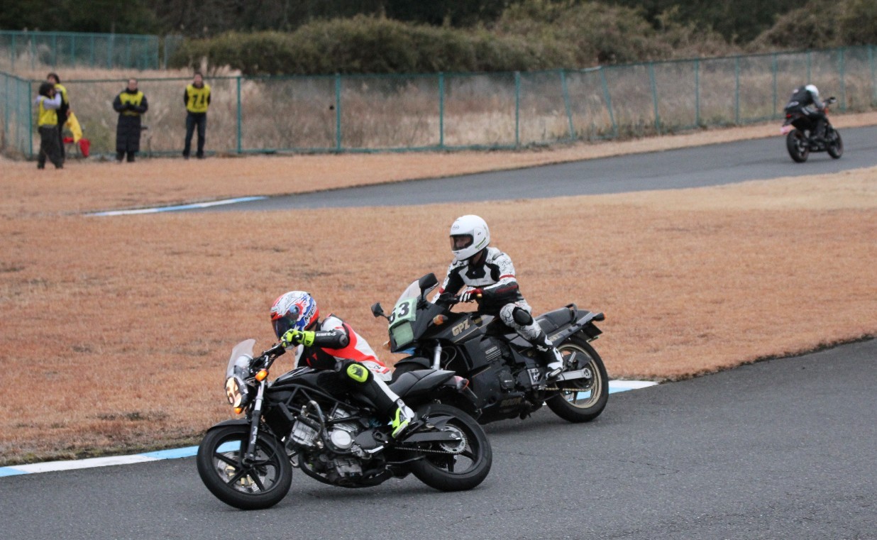 さらに6番手争いは125DUKE田口とGPZ900Rの脇谷。