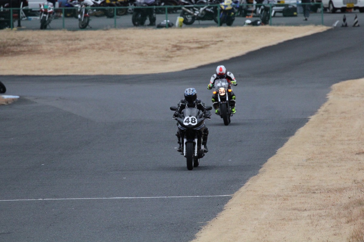 久しぶりの出走ながらも快調に周回を重ねる露木FZ6。しかし今回愛機に大物を投入してきた妹尾も好調そうだ。