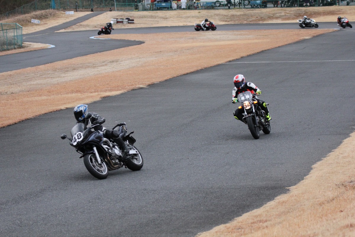 すぐにビハインドを取り戻したのは妹尾VTR250。再び露木の背後に迫る。