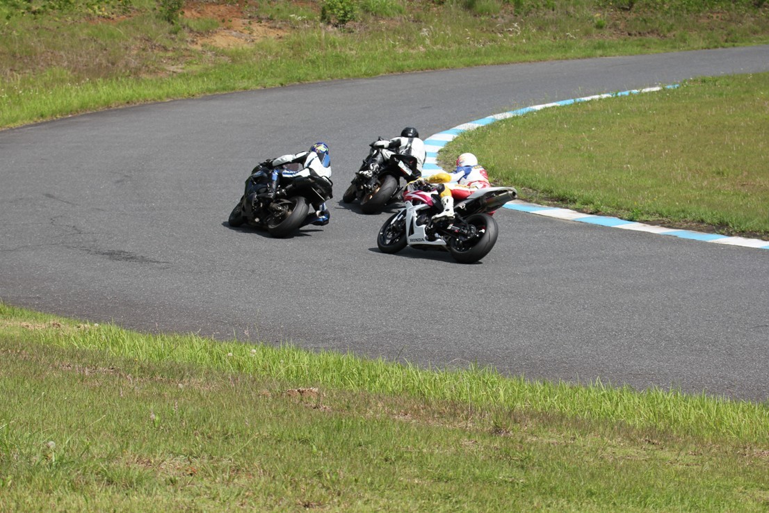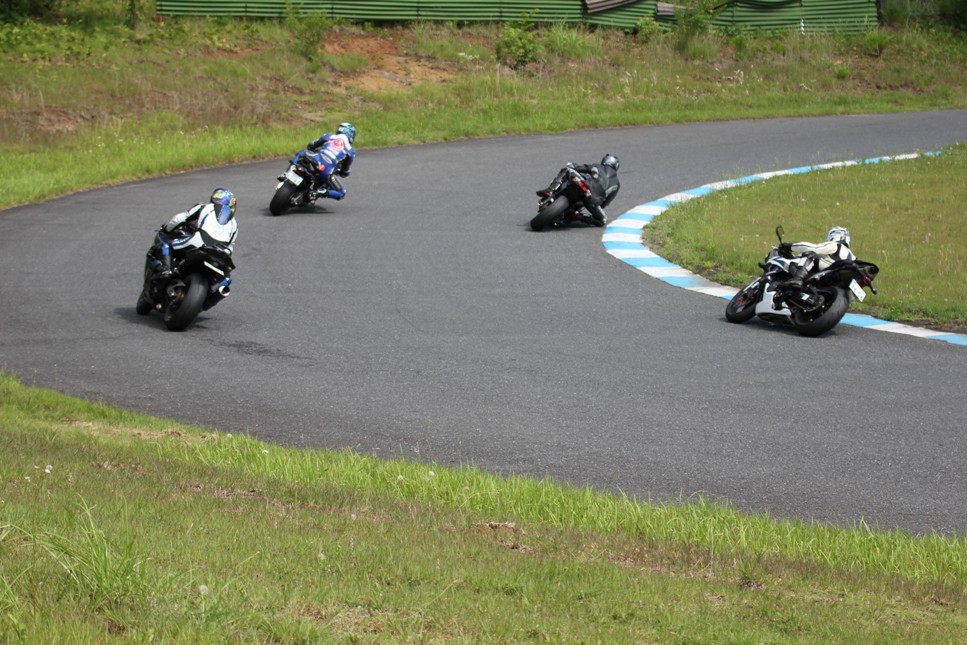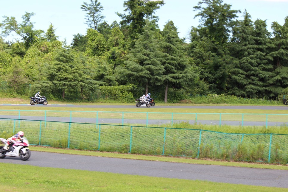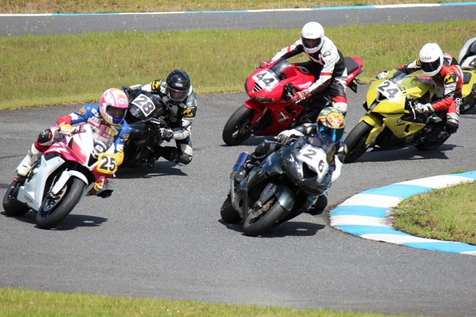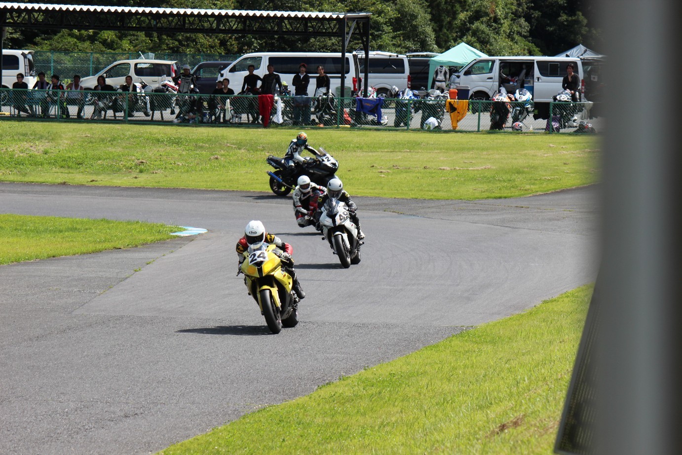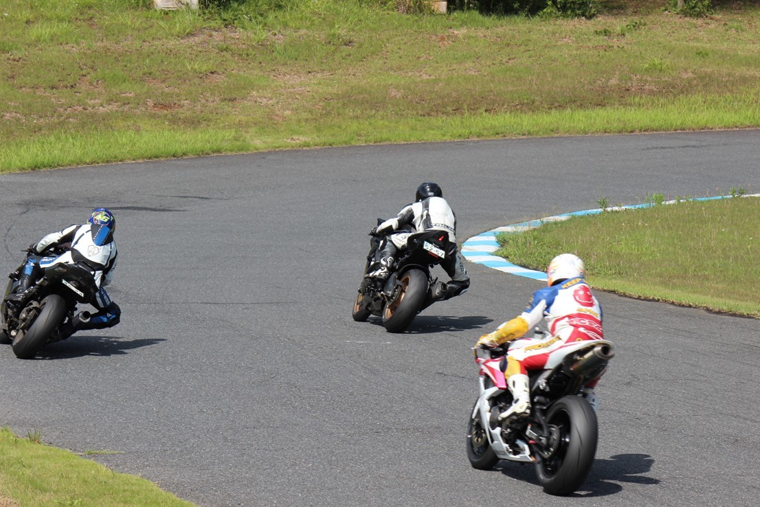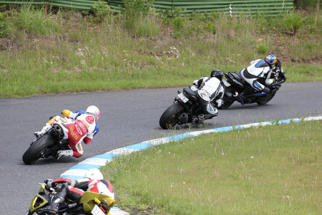 9番手に安野パニガーレS、10番手に西村CBR600RR。S字でも激しくポジション争いが行われる。