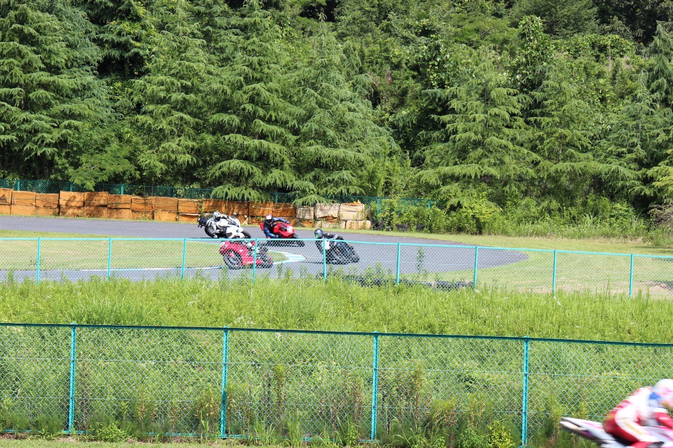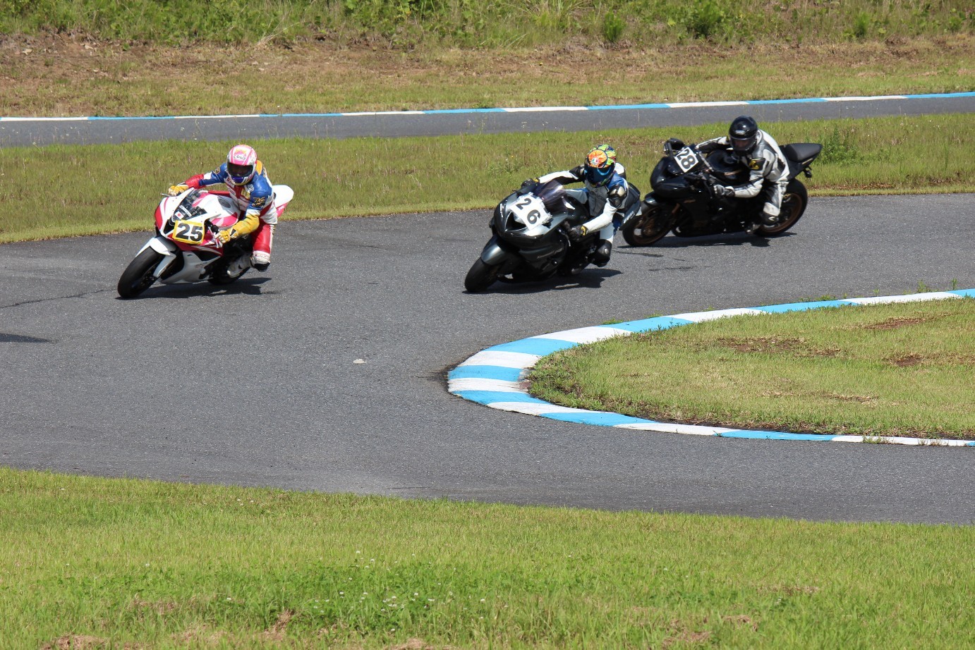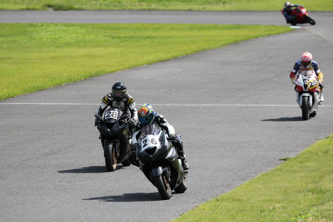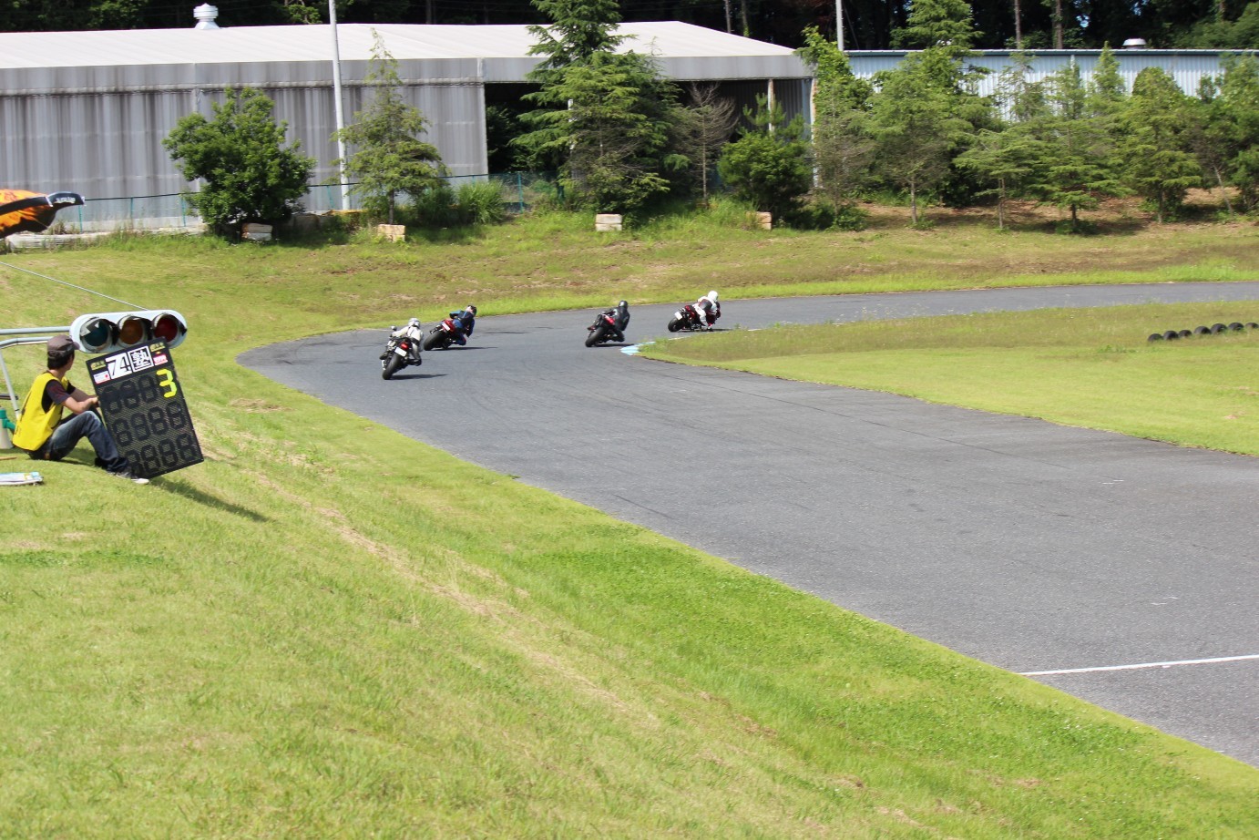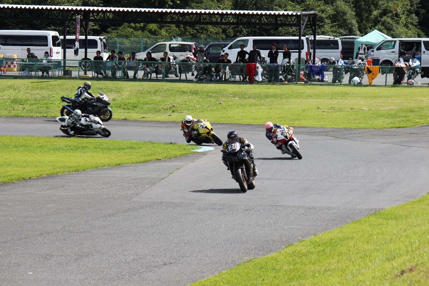 9番手に安野パニガーレS、10番手に西村CBR600RR。S字でも激しくポジション争いが行われる。