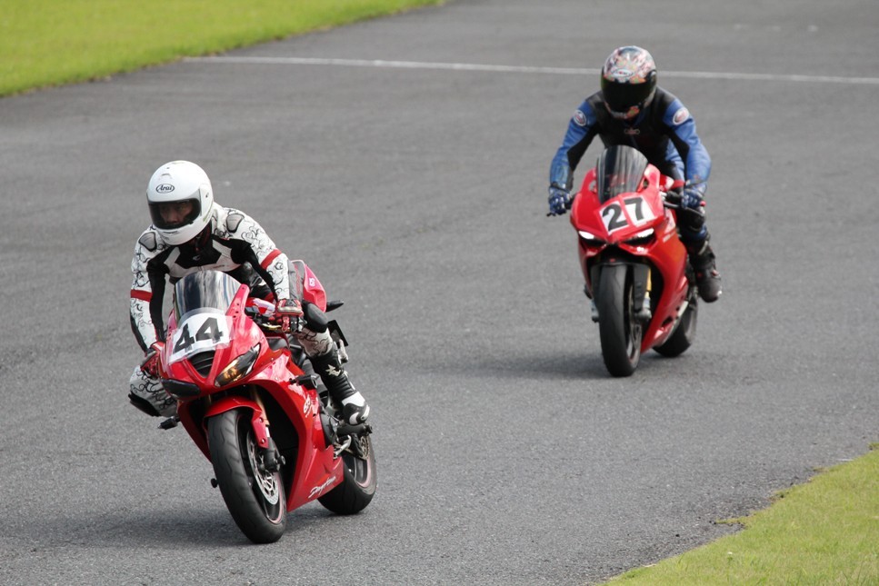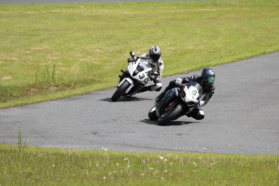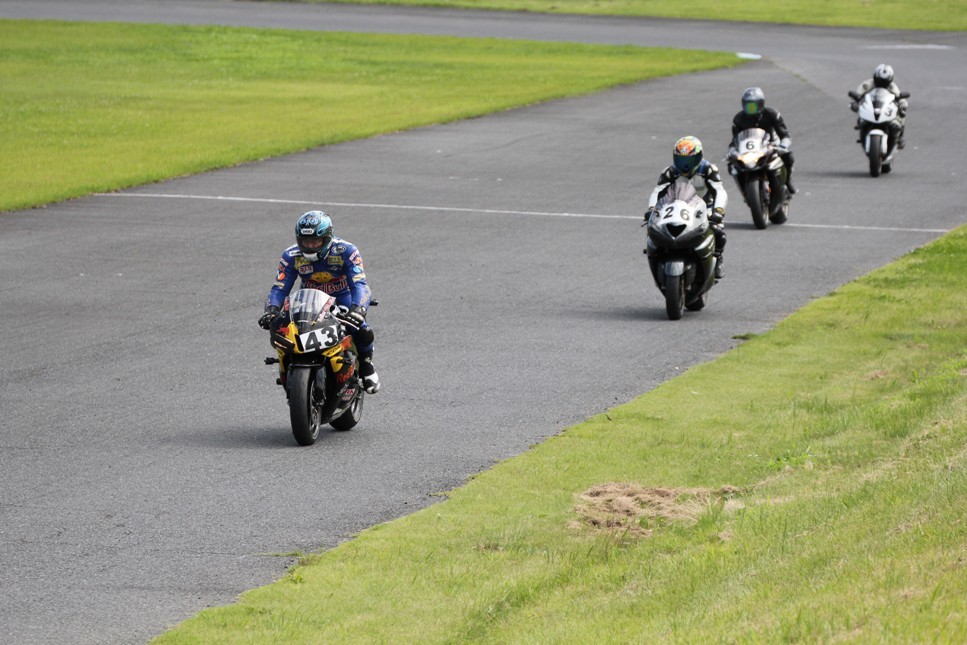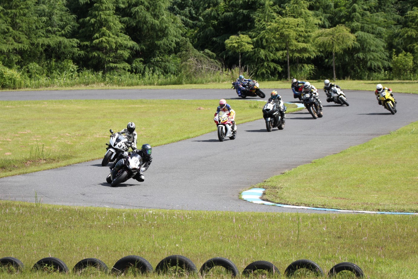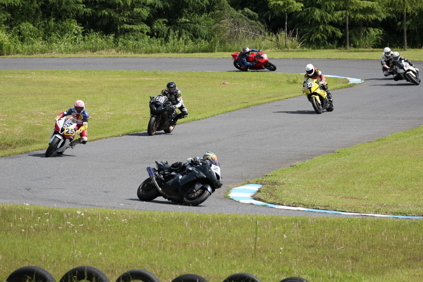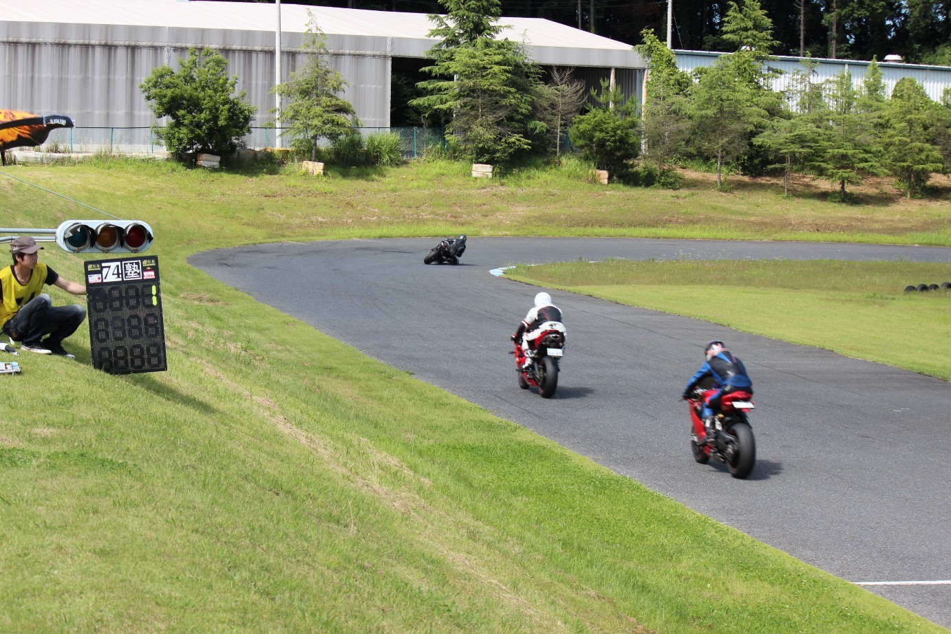 9番手に安野パニガーレS、10番手に西村CBR600RR。S字でも激しくポジション争いが行われる。