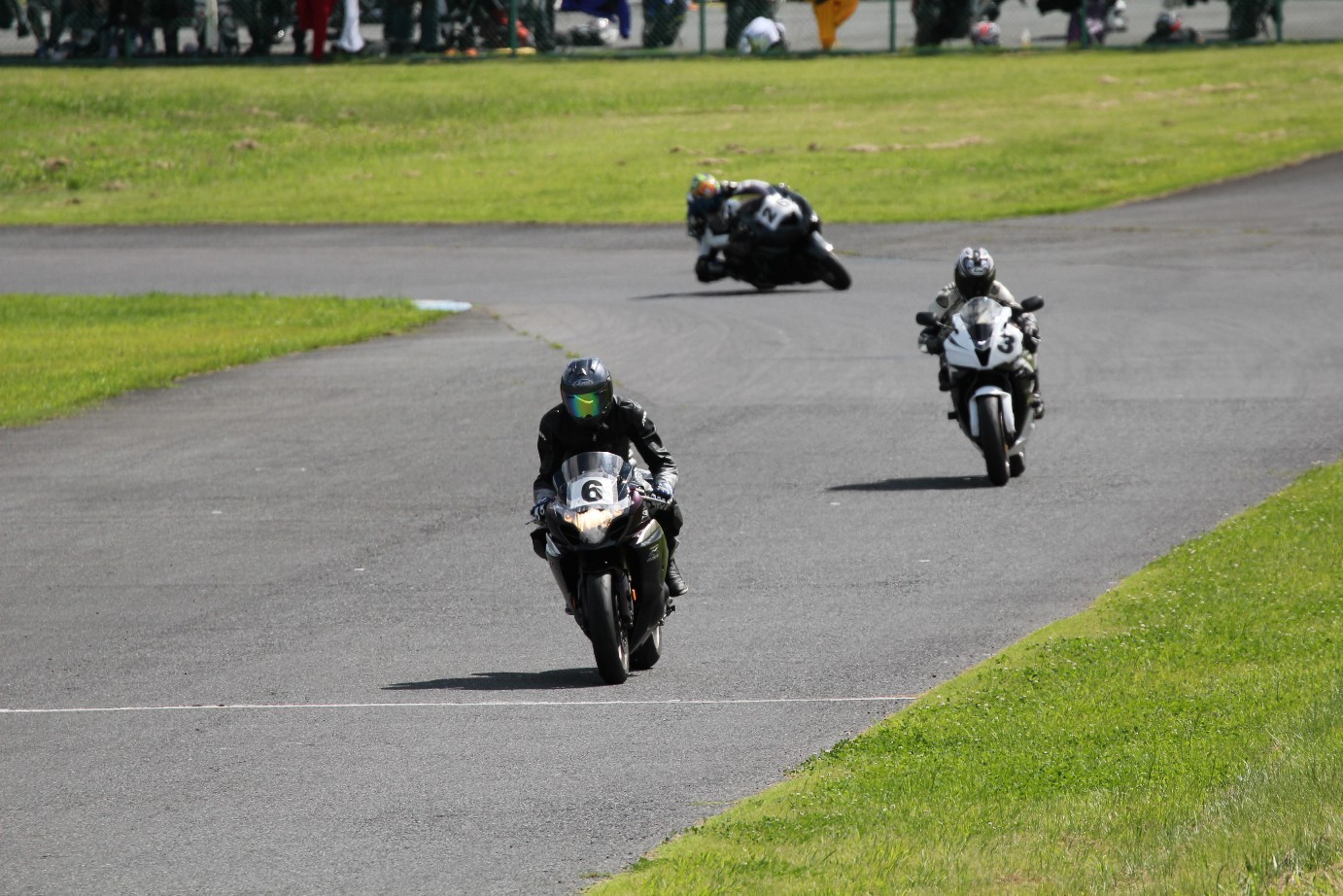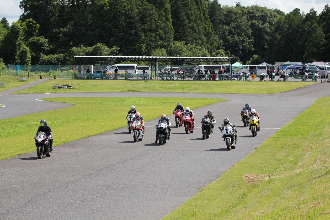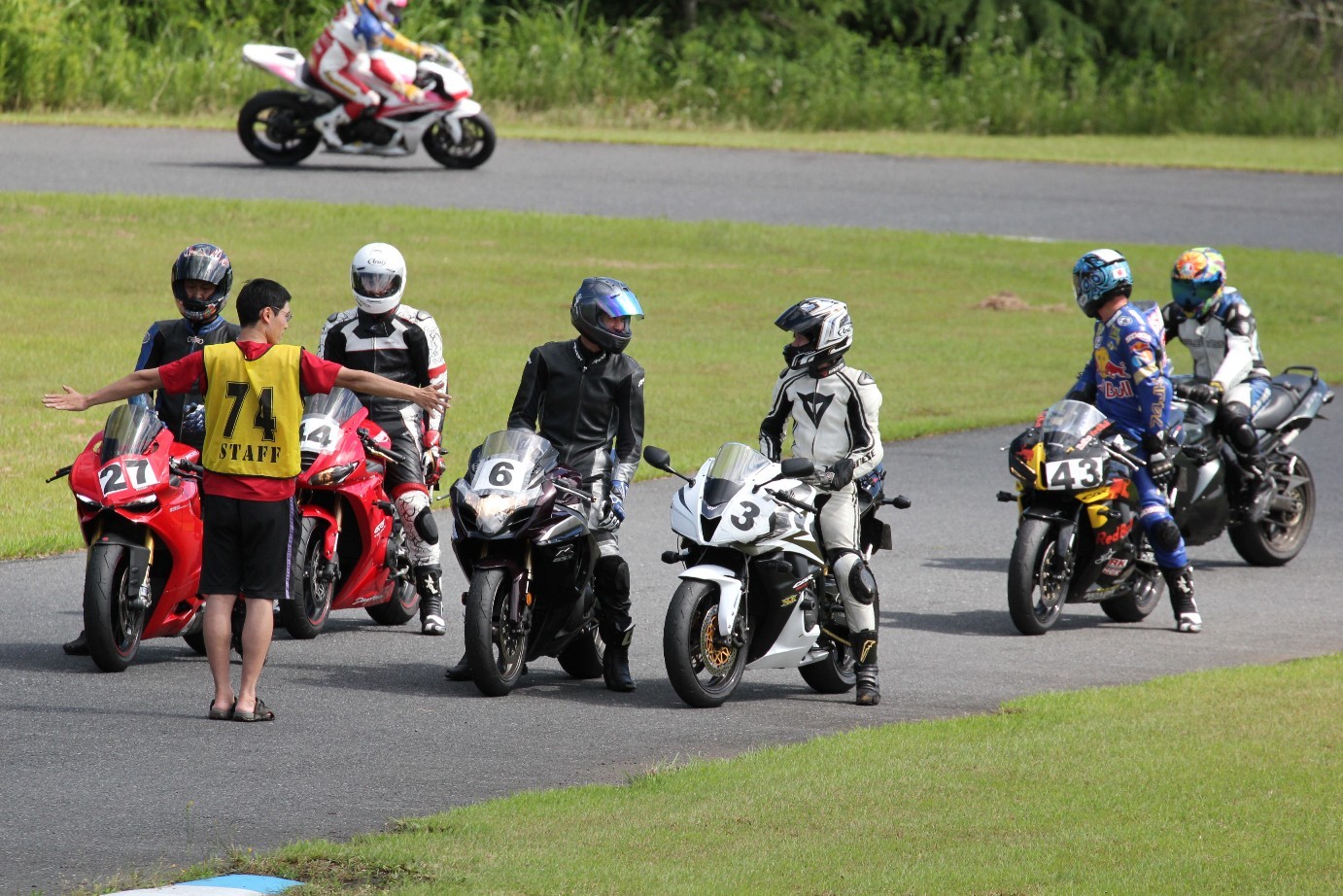 予選3番手、イン側から因藤GSXR1000。切っ先を制して1コーナーに飛び込んでいく。2番手にはやや慎重にスタートを切った山中CBR600RR、3番手には予選5番手からジャンプアップした皆藤CBR600RR、4番手には出遅れた田中ZZR1400、5番手争いを池原S1000RRと伊藤ZX10R、7番手争いを高島デイトナ675と大塚S1000RRという順。
