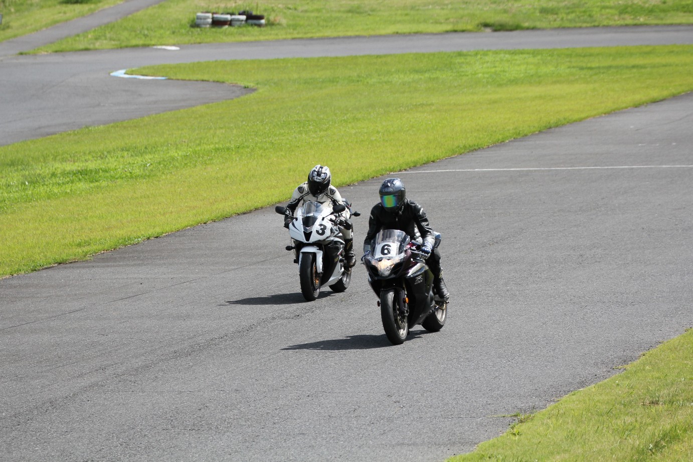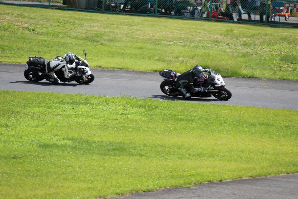 午前Cクラスよりジャンプアップを果たした大塚S1000RRが、同じくCよりジャンプアップ組である高島のインをつく。