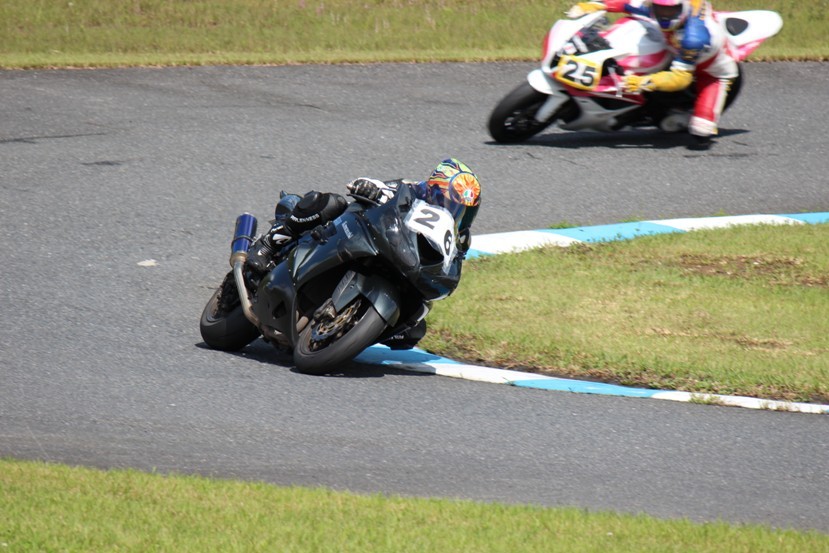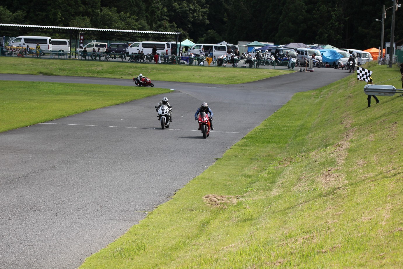 さらに前方を走る田中を攻め立てる。カワサキ同士の熱い戦い。