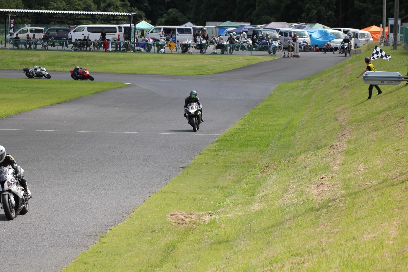 好走を続けていた田中ZZR1400だったが、マシンに異常?ブレーキパフォーマンス的にかなり厳しい面もあるようで、ここで一気にペースダウン、後続に先行を促して最後尾へ。