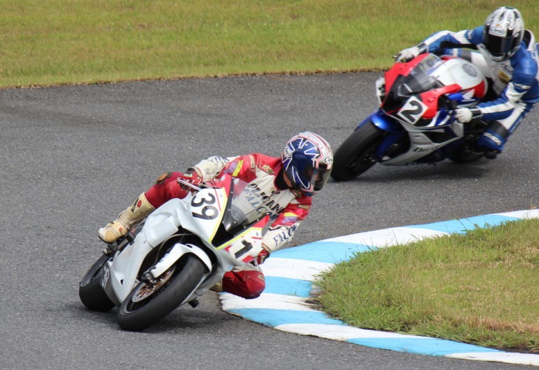 それまで4番手を走っていた因藤GSXR1000が、ややスライド気味に1コーナーへ進入………