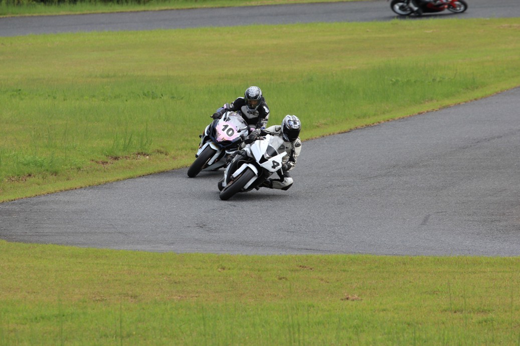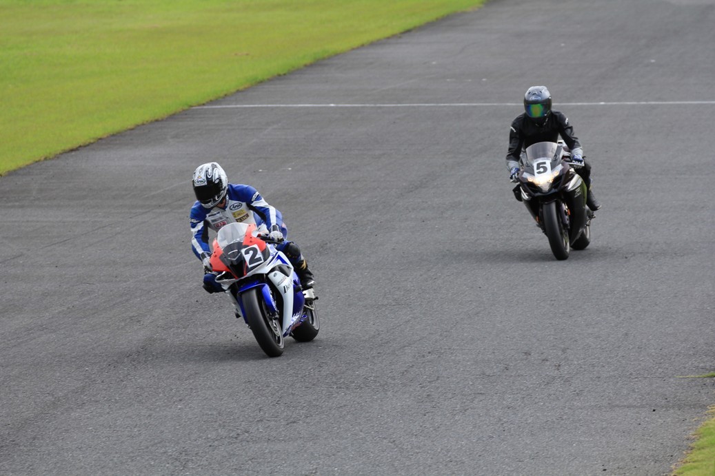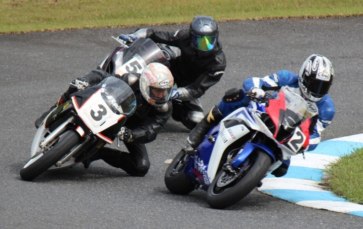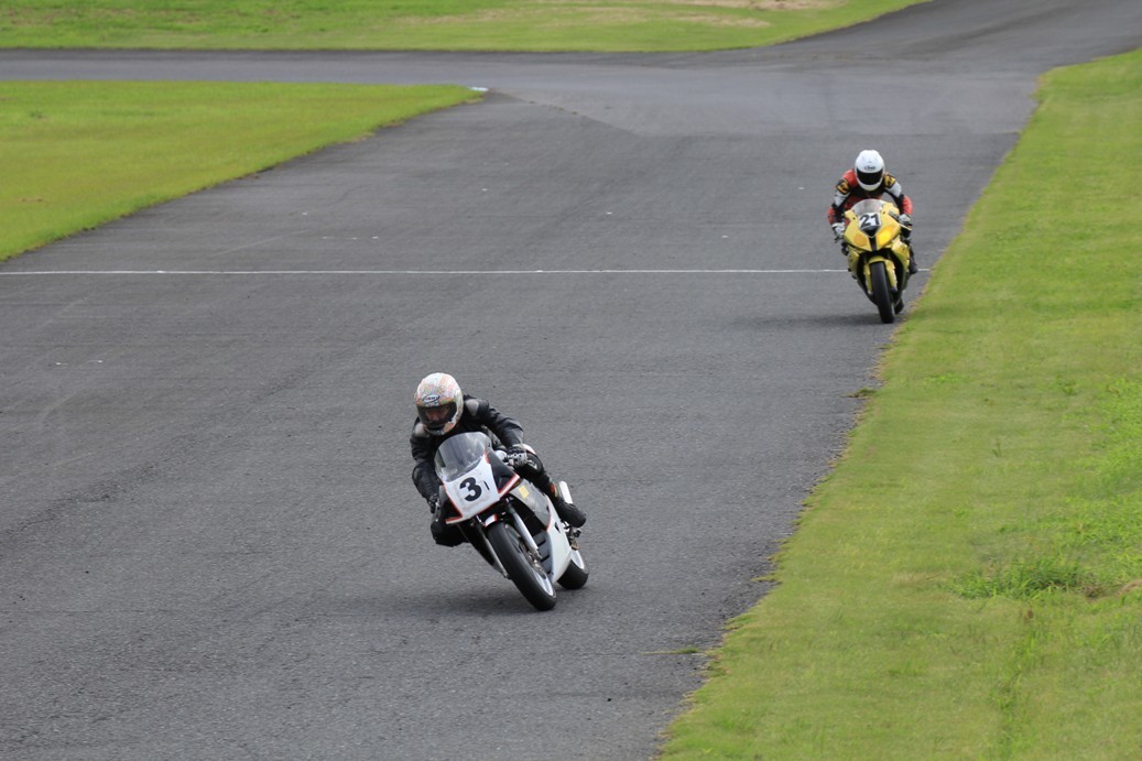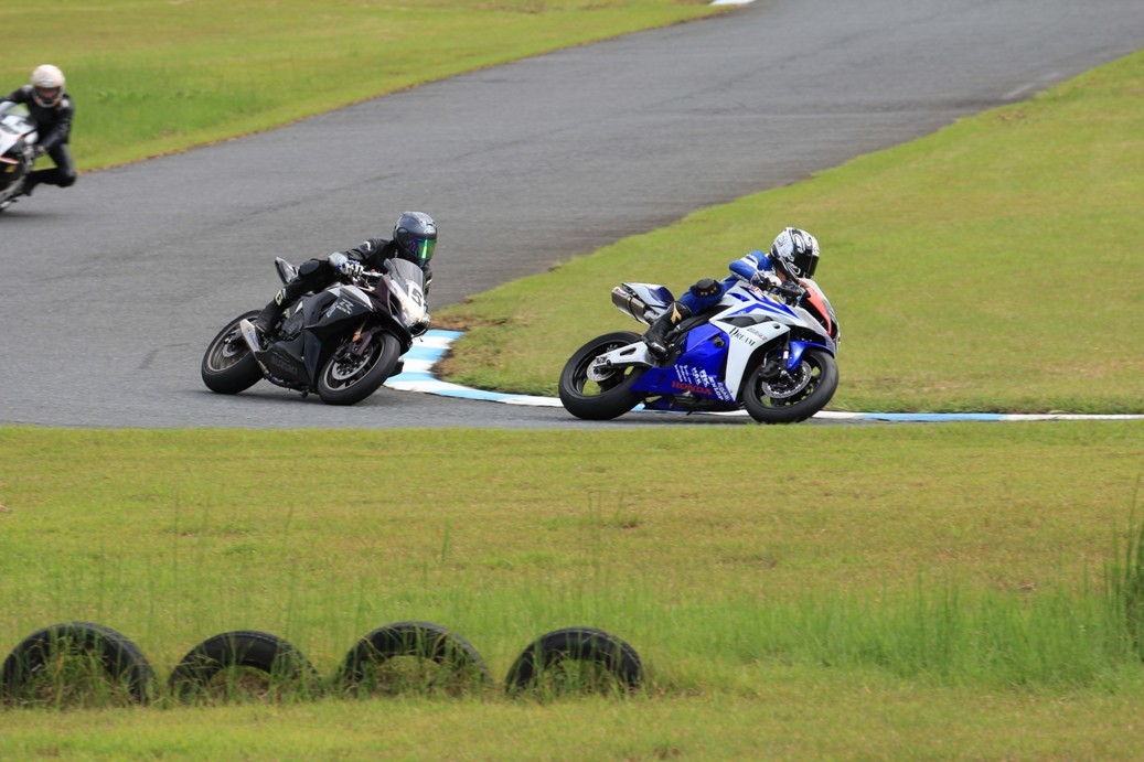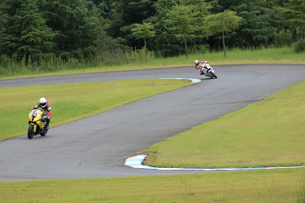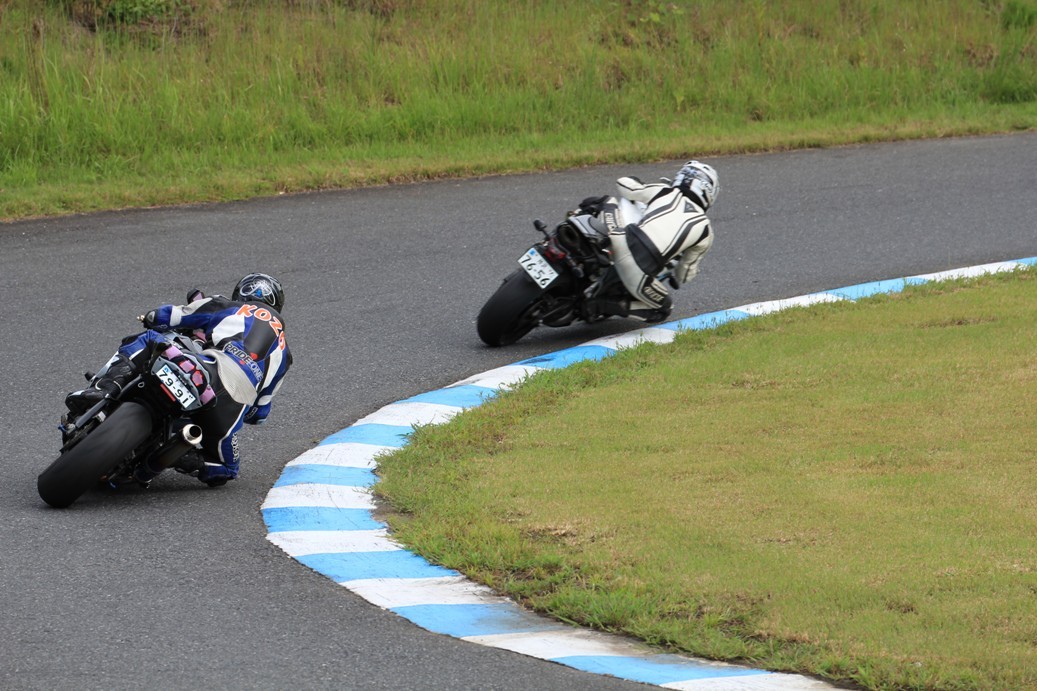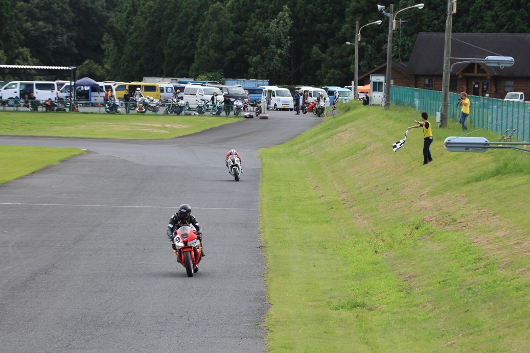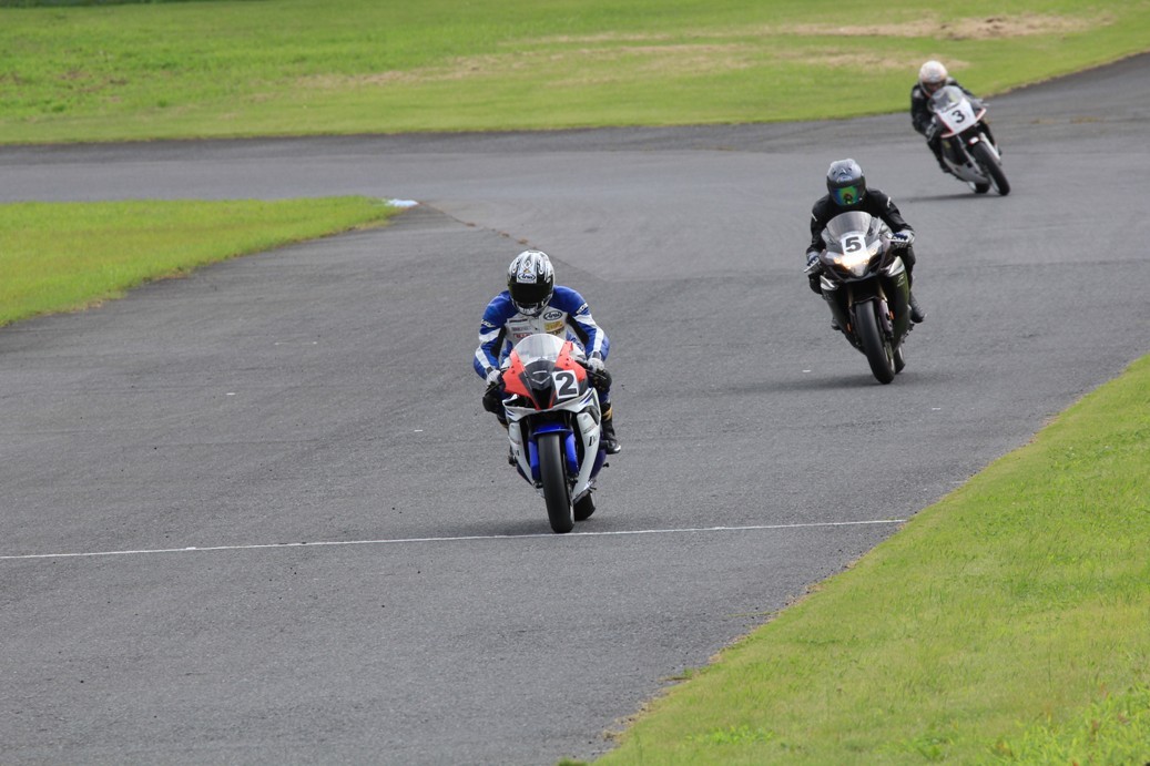 7番手に磯山TZR250R、8番手に皆藤CBR600RR、予選6番手からバックスタートとなったのは9番手の緒方CBR600RR、そして午前Bクラスから唯一ジャンプアップした池原S1000RRが10番手で1コーナーへ。