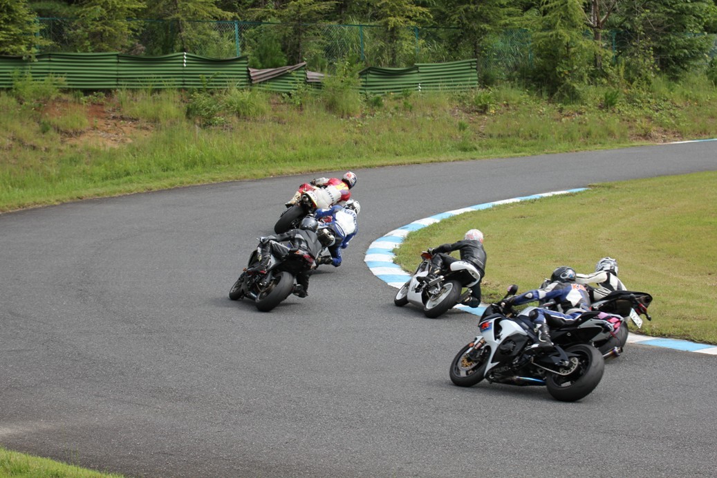 CBR600RR(PC40)が3台、GSXR1000とTZR250Rが1台ずつ、都合5台によるバトル。