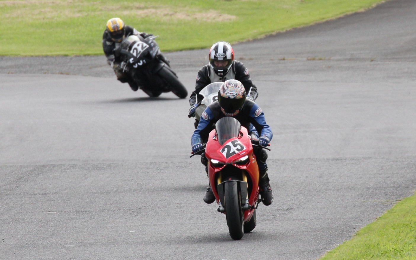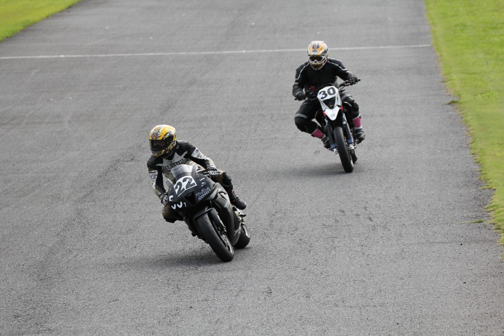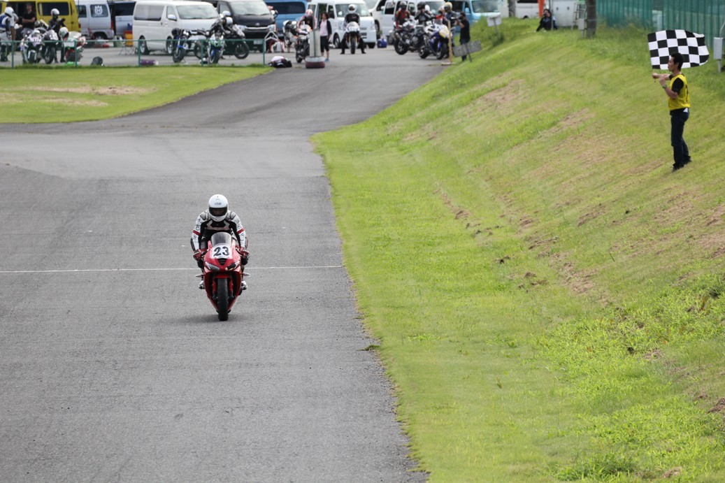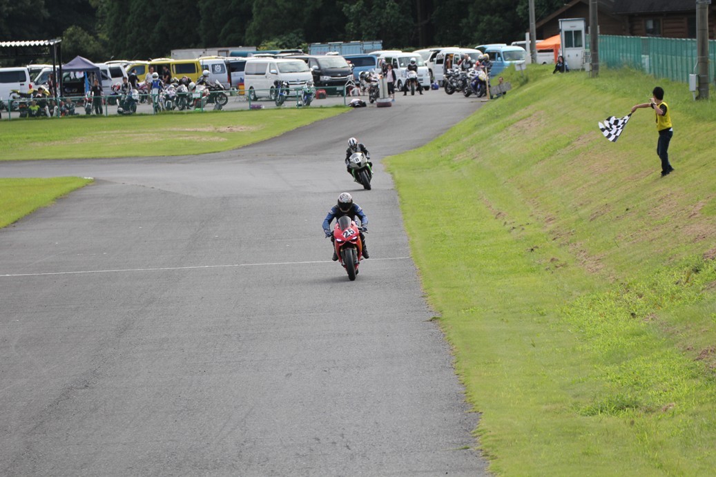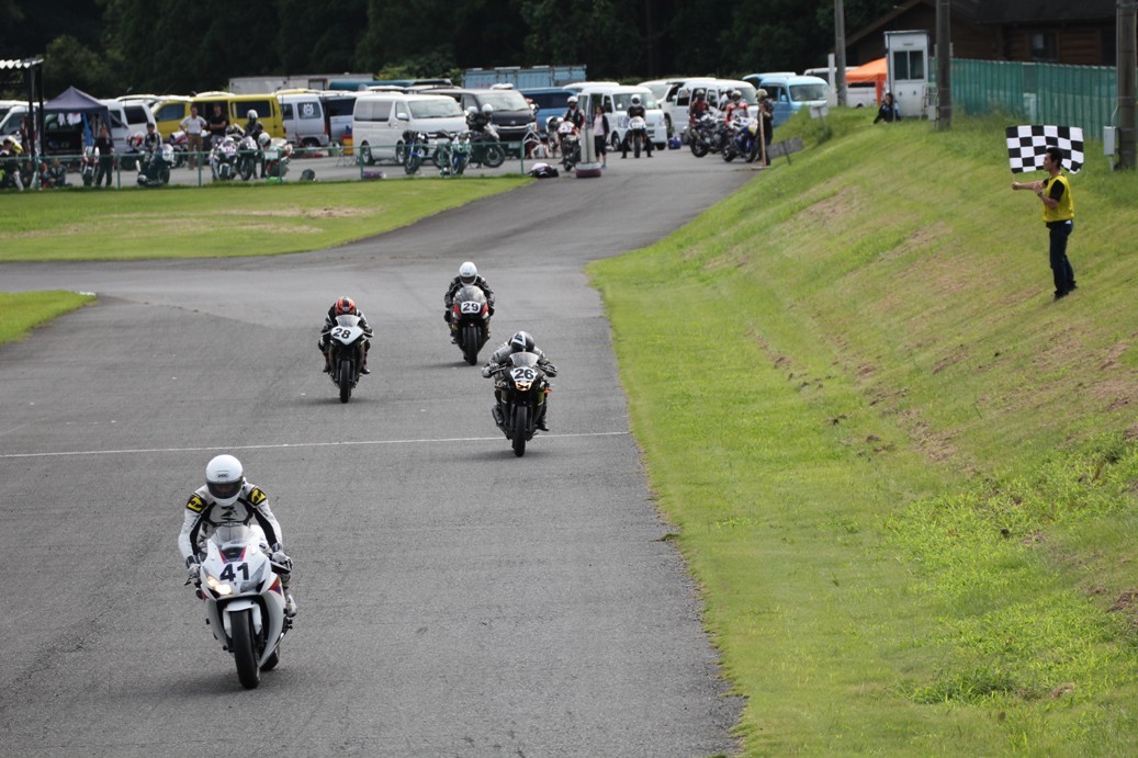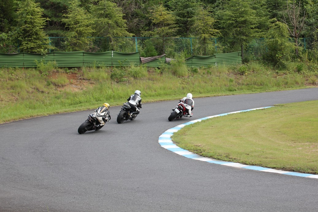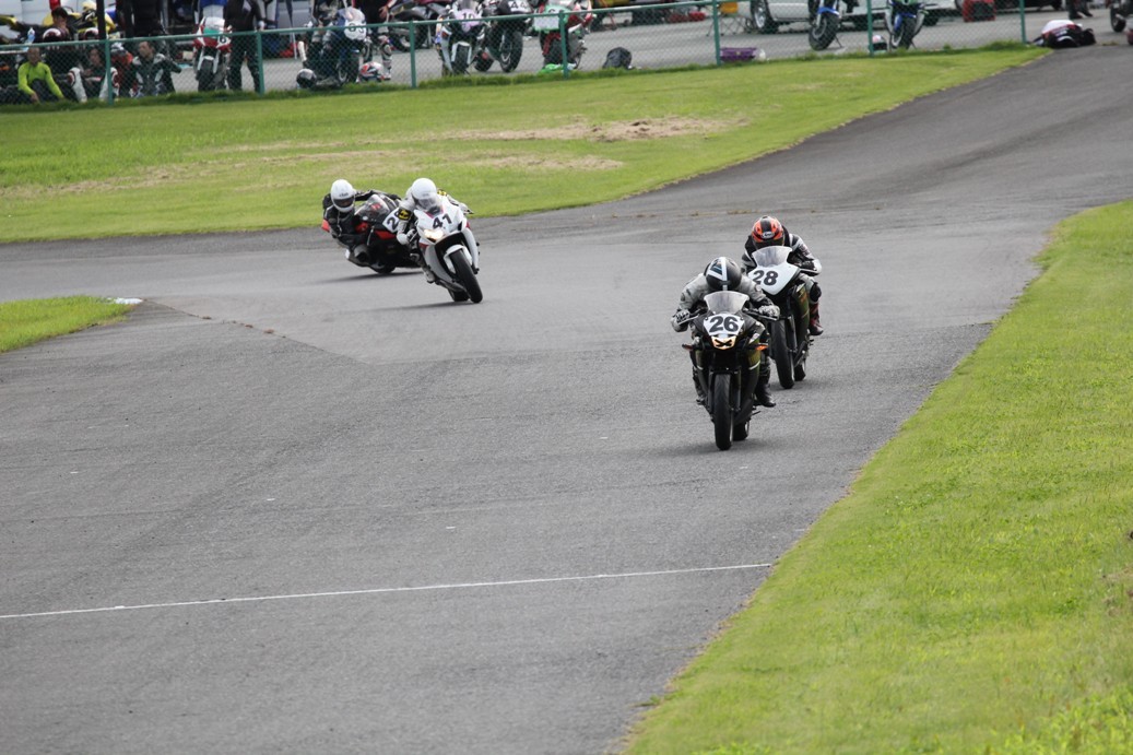 3番手には初参加でセカンドローから出た門間CBR600RR、4番手にやや出遅れた高島デイトナ675、6番手に渡辺CBR250R、7番手に大塚S1000RR、予選4番手から出た松野SMR449は大きく出遅れて8番手、9番手に前田CBR1000RR、そして10番手に安居GSXR750。