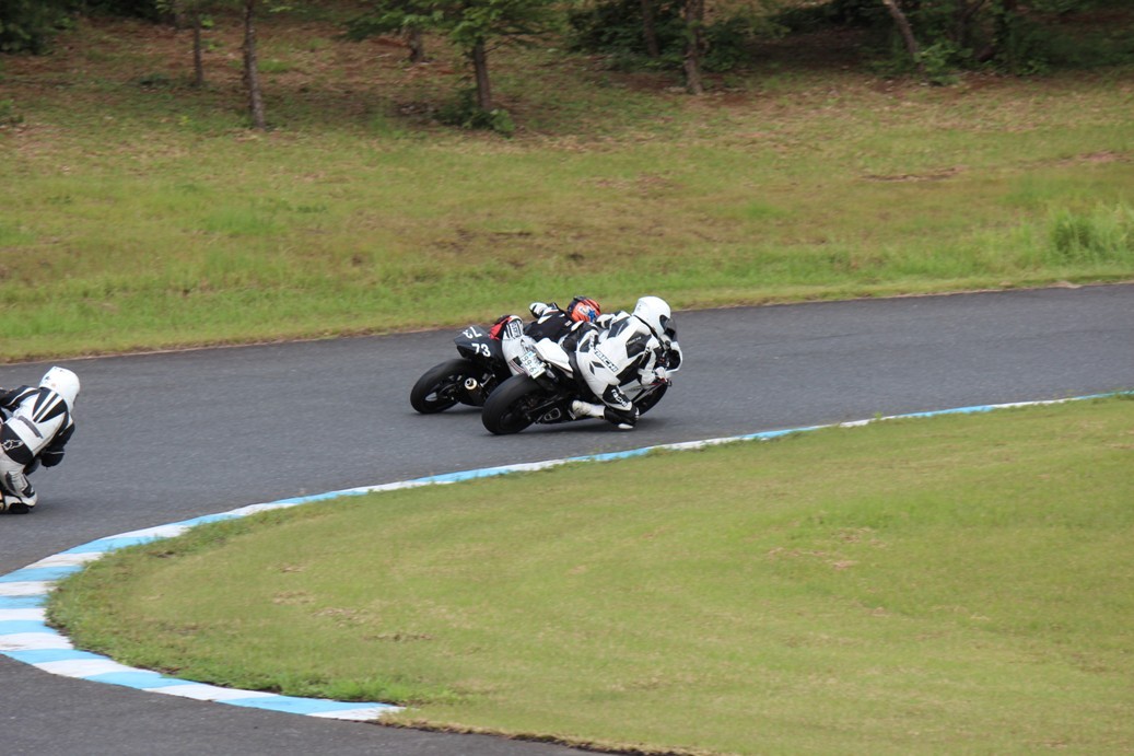 その後方では、まず大塚S1000RRが追い上げて渡辺CBR250Rをパッシング、5番手へ浮上。さらにその後ろ、7位争いでは………