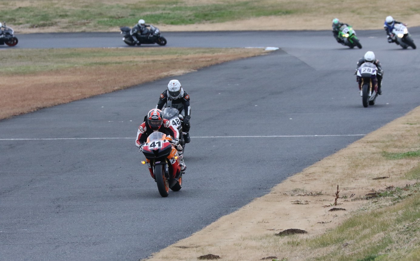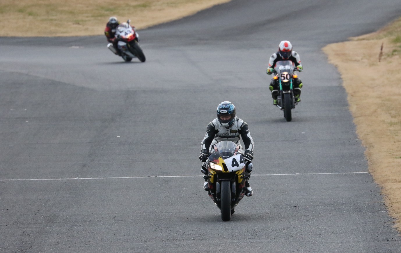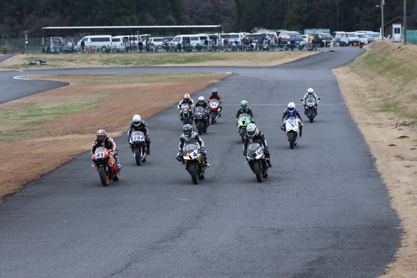 西村がトップを奪って1コーナーを立ち上がる。5番手に柴899パニガーレ、6番手に吉田ZX6R、7番手に関GSXR1000………