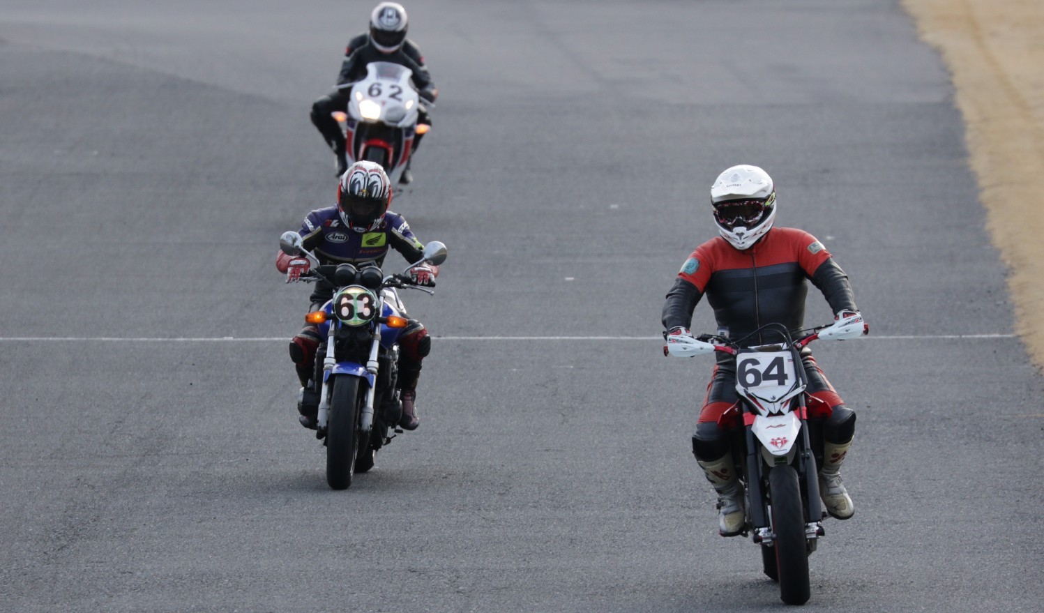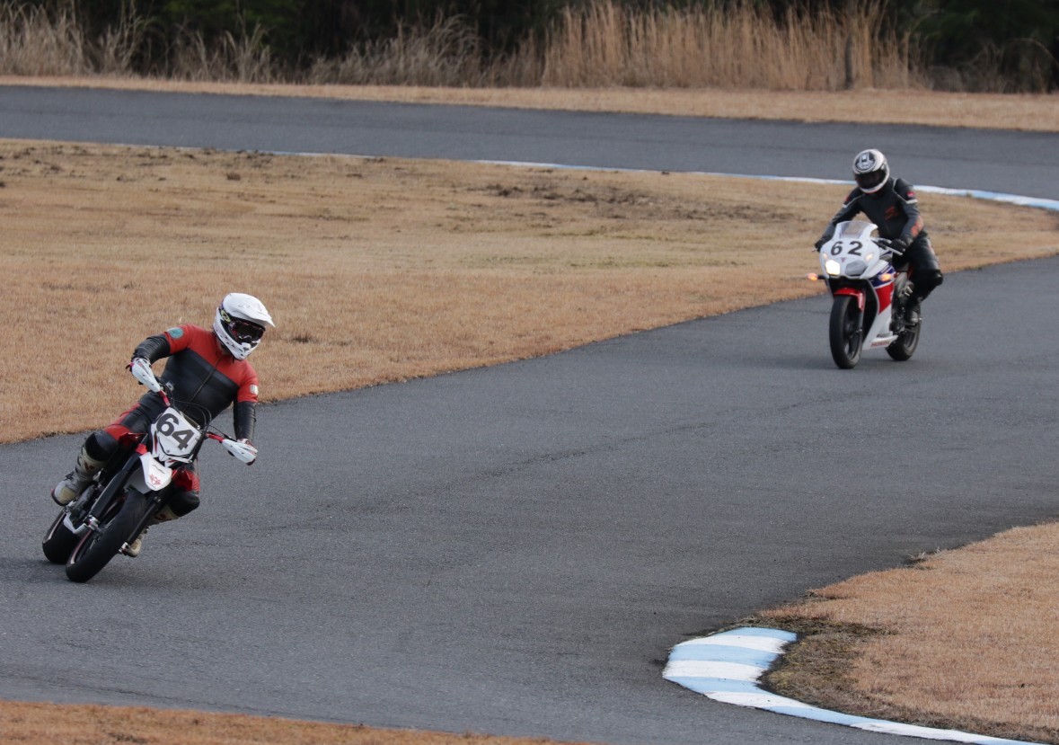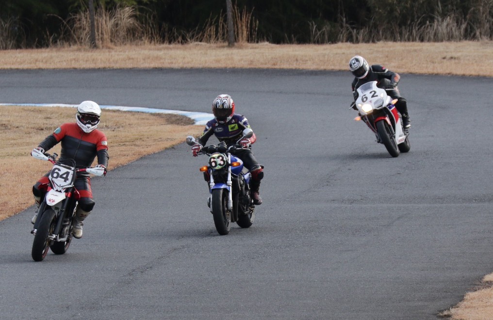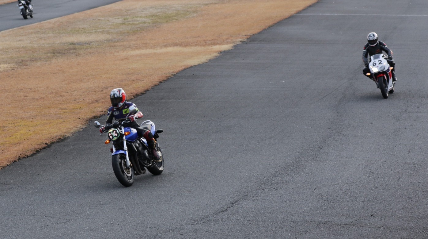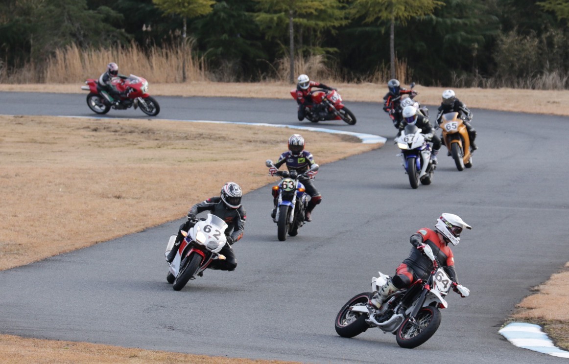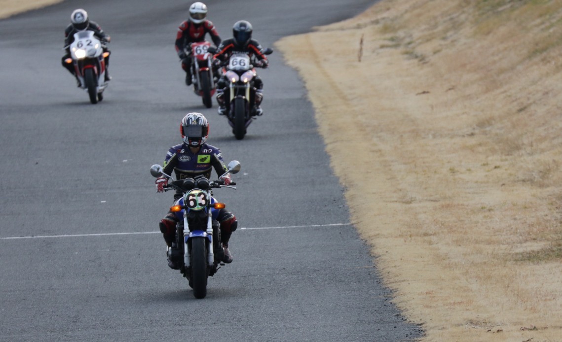 5番手に増田CBR250R、6番手に初参加の佐藤ストリートトリプル、7番手に吉川MH900e、8番手には同じく初参加の内藤スパーダ。
