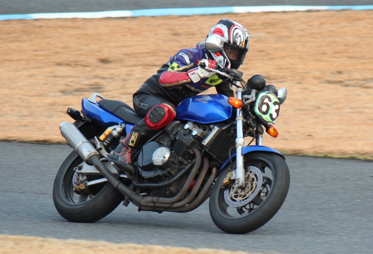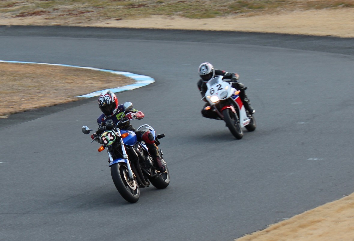 2番手に五十嵐CBR250R、3番手に梨本亮CB400SF、そして4番手には金本CBR600RR。