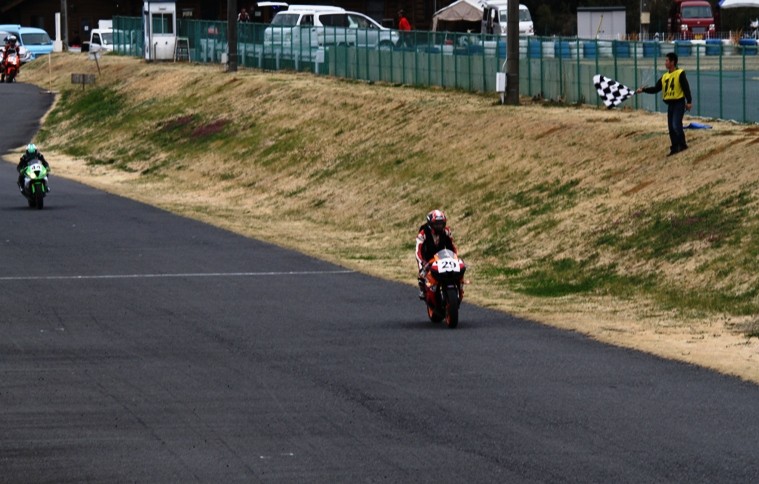 そのままトップでチェッカーフラッグをくぐり抜けた。