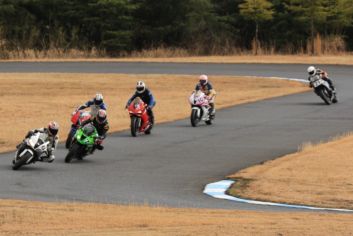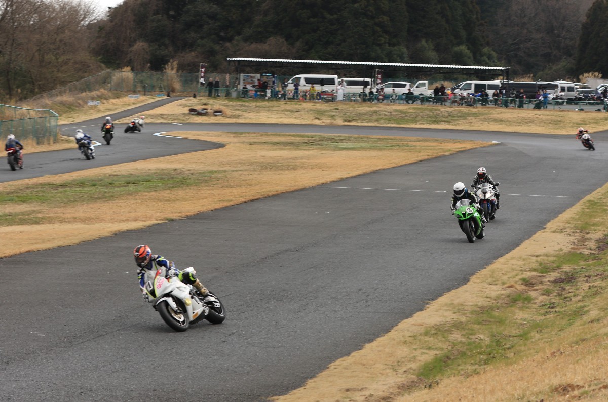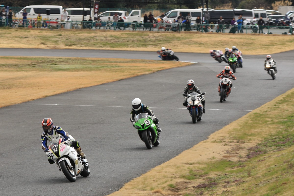 斉藤が前へ。6番手争いは榎本CBR600RRと宮原ZX6R、さらに8番手に安野1199パニガーレS、9番手争いは皆藤CBR600RRと佐々木FZ750と続く。